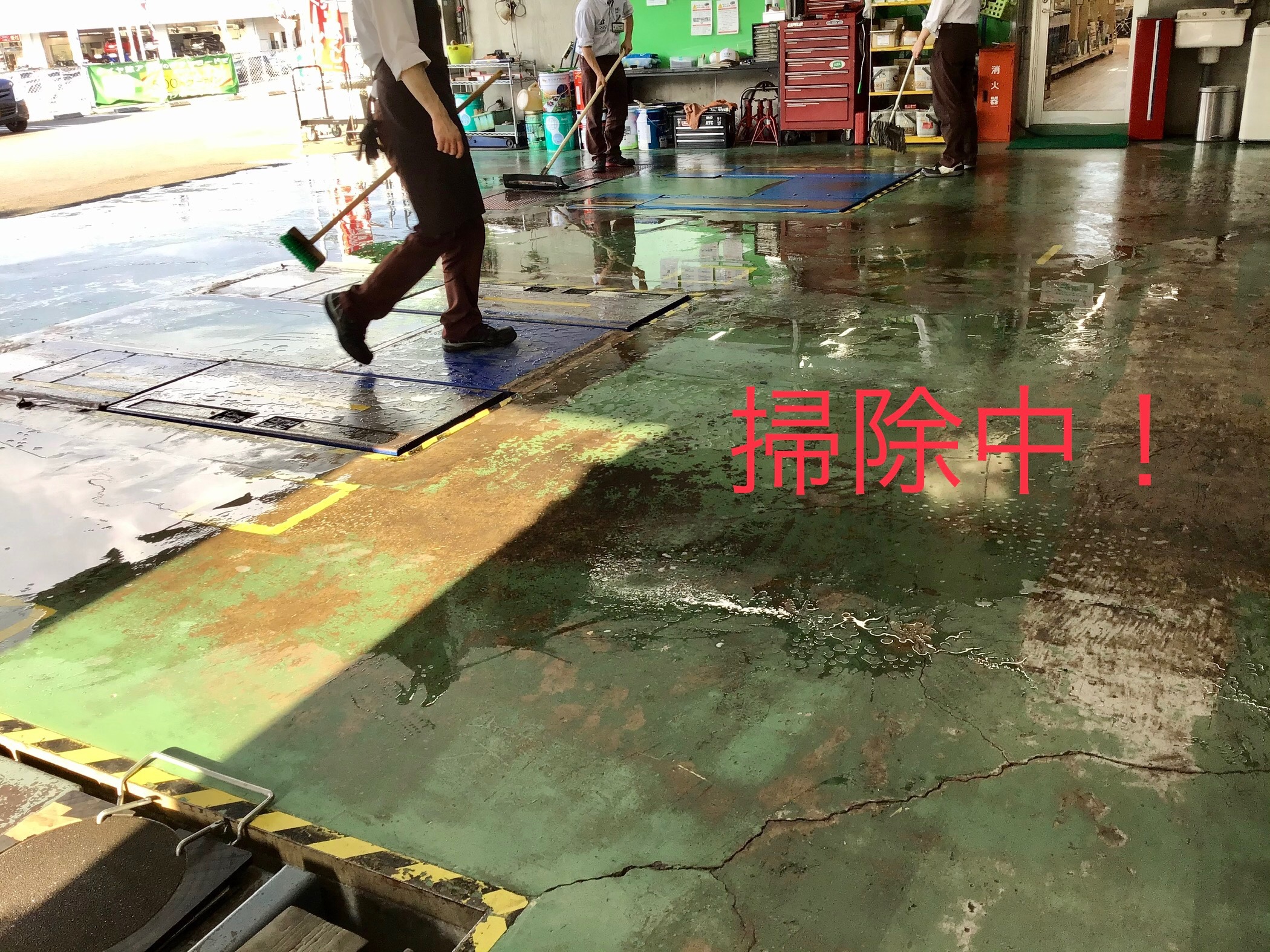 本日はピット作業の合間に床の掃除をしました。