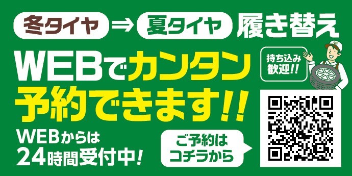 24時間WEBでカンタン予約できます! 2025年3月16日 WEB予約(来店相談・作業予約) ・WEBからの来店相談予約はコチラから→→→◆クリック◆ ・タイヤの点検・安全点検/タイヤ履き替え脱着/タイヤ交換/オイル交換など その他のピット作業の予約はコチラから→→→◆クリック◆ 不明な点がございましたら いつでもお気軽にお問い合わせください!