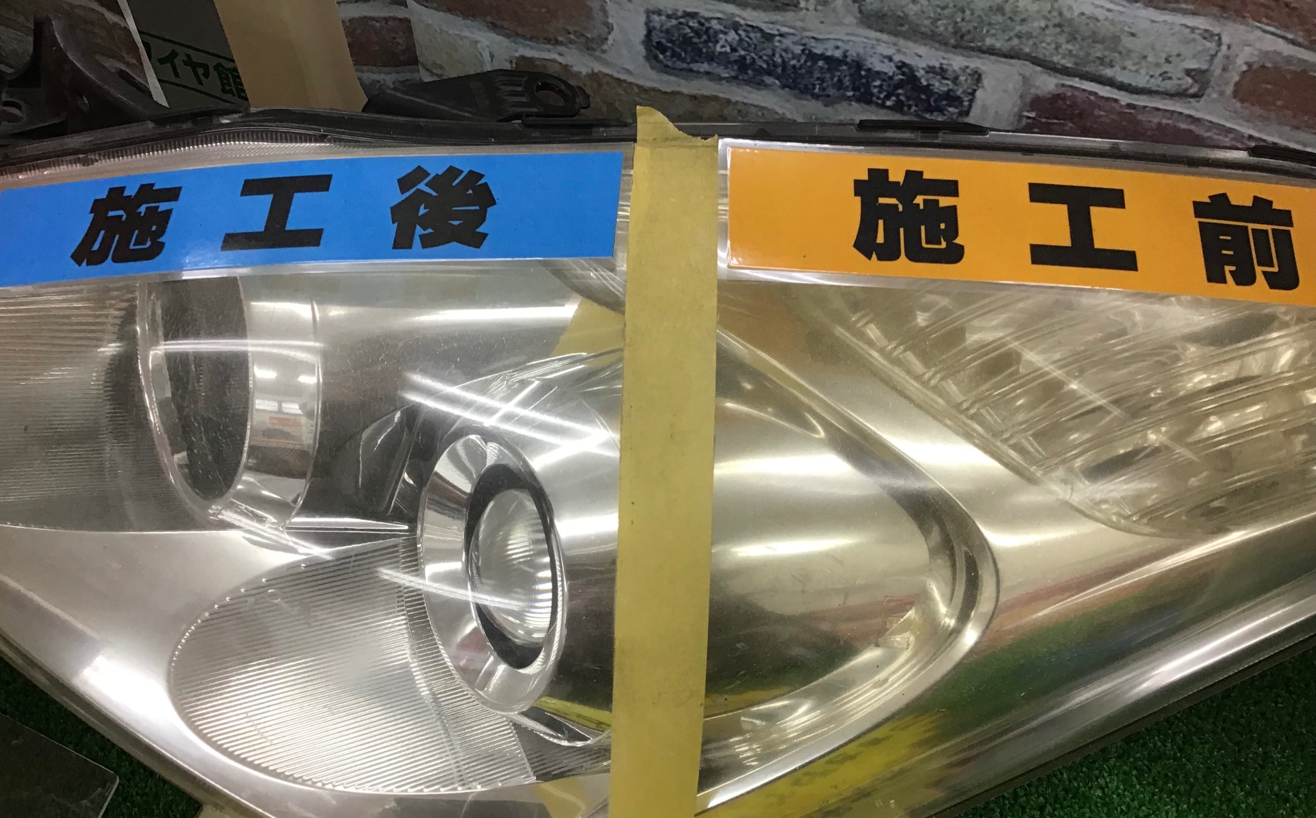 当店ではヘッドライトの黄ばみ、曇りを落とすヘッドライト磨きをやっております!