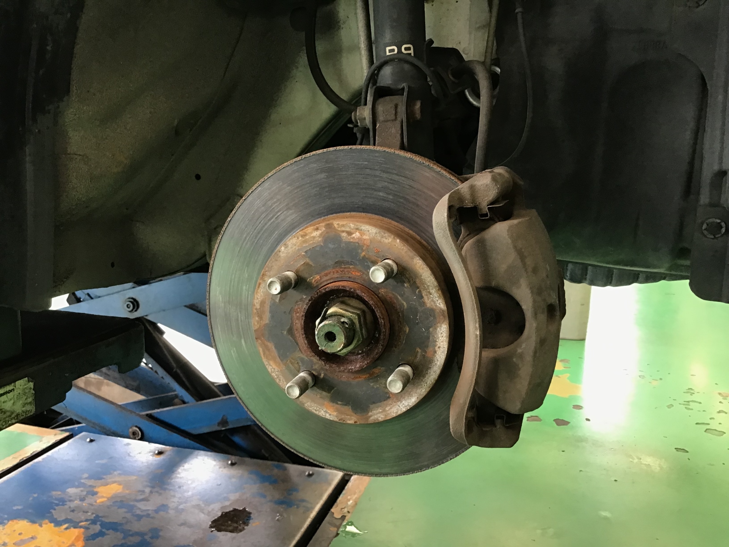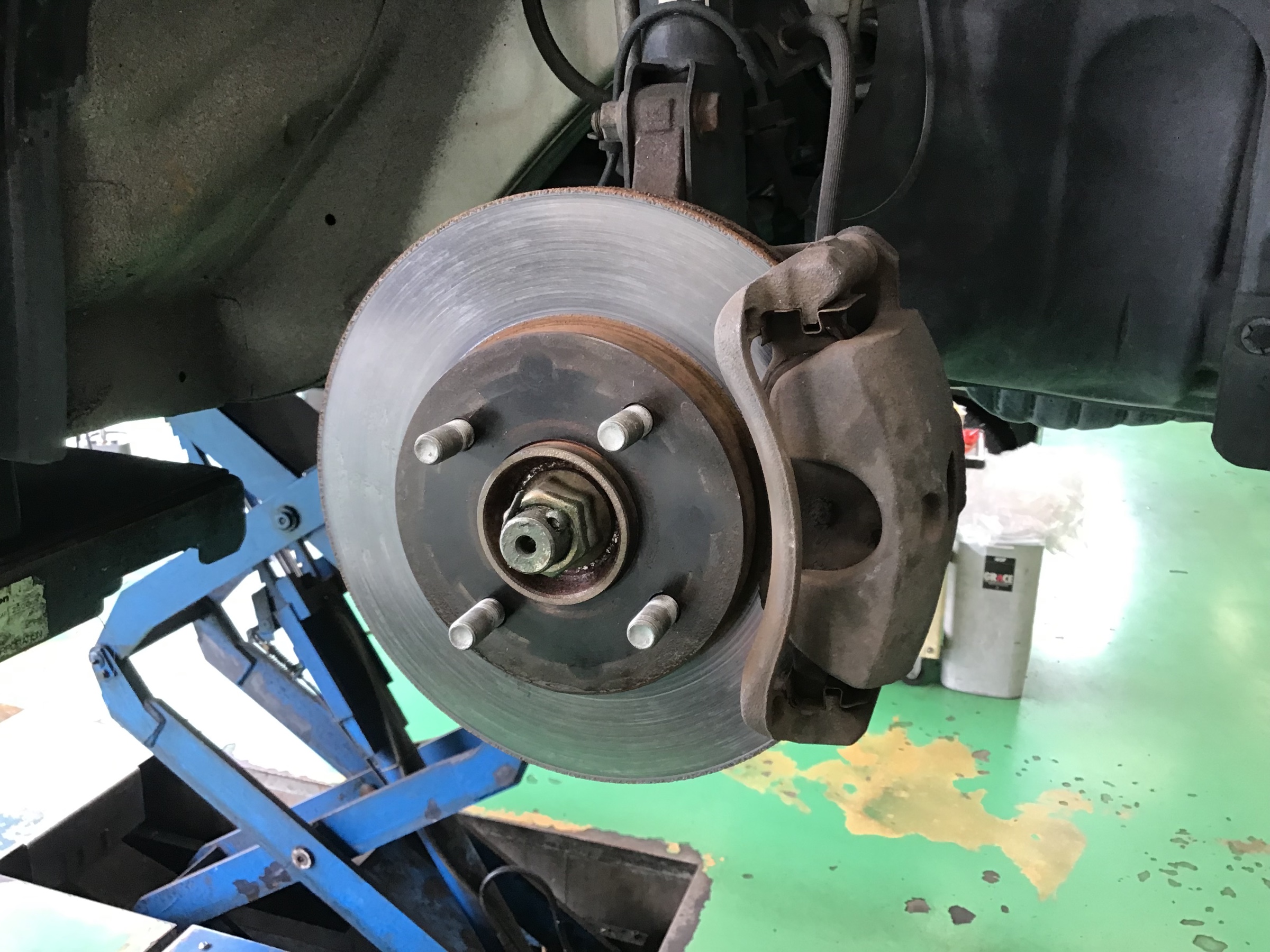 タイヤ交換のお客様でしたが、タイヤを外した際にハブの錆が目立っていたため、写真を見せて防錆加工の提案をさせていただきました。