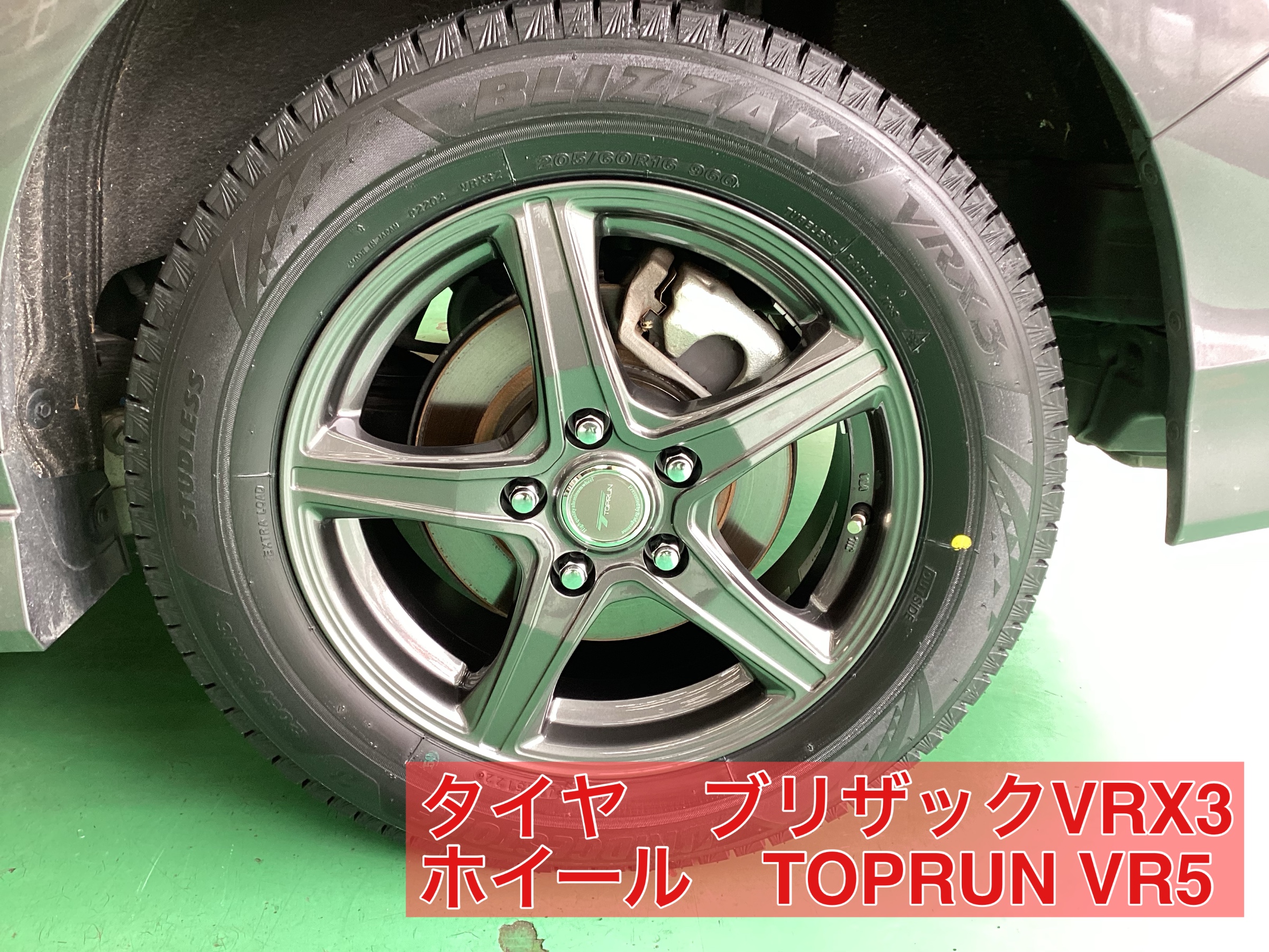 タイヤはブリザックVRX3 ホイールはTOPRUN VR5 になります。