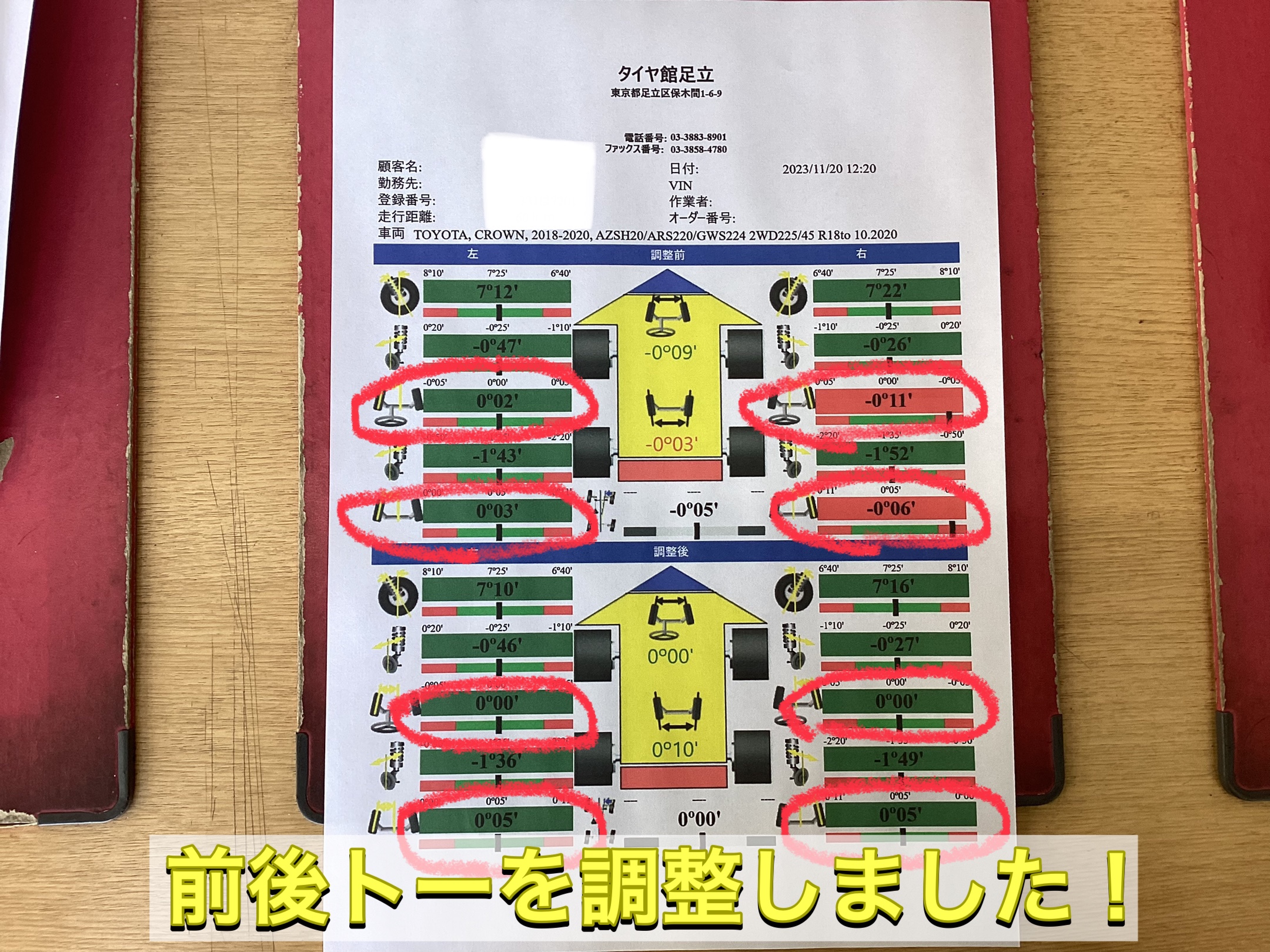 【トヨタ クラウン】タイヤ角度調整❗️(アライメント調整)