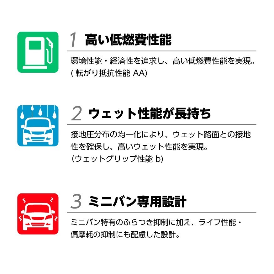 さらに「ラウンドスロット」を搭載し、タイヤIN側の剛性を高めることで、ミニバン専用パタンとして走行時のふらつきにも配慮しています。