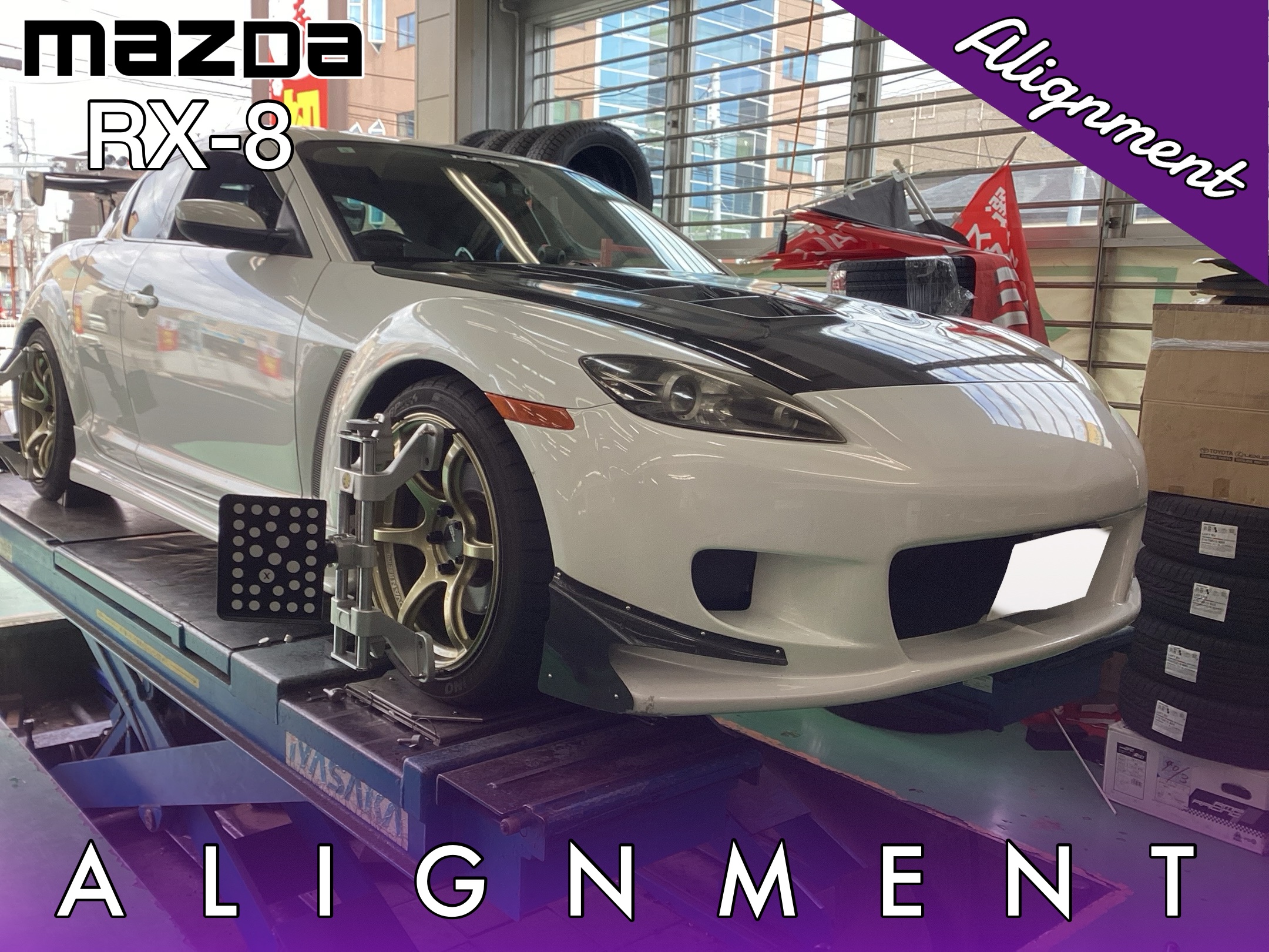今回はこちら、マツダ RX-8のアライメント調整を行いました。