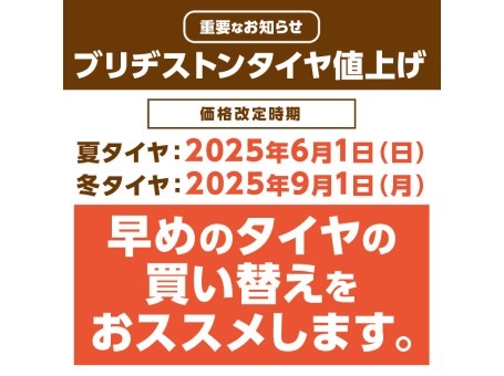 ブリヂストンのタイヤが値上がりいたします。
