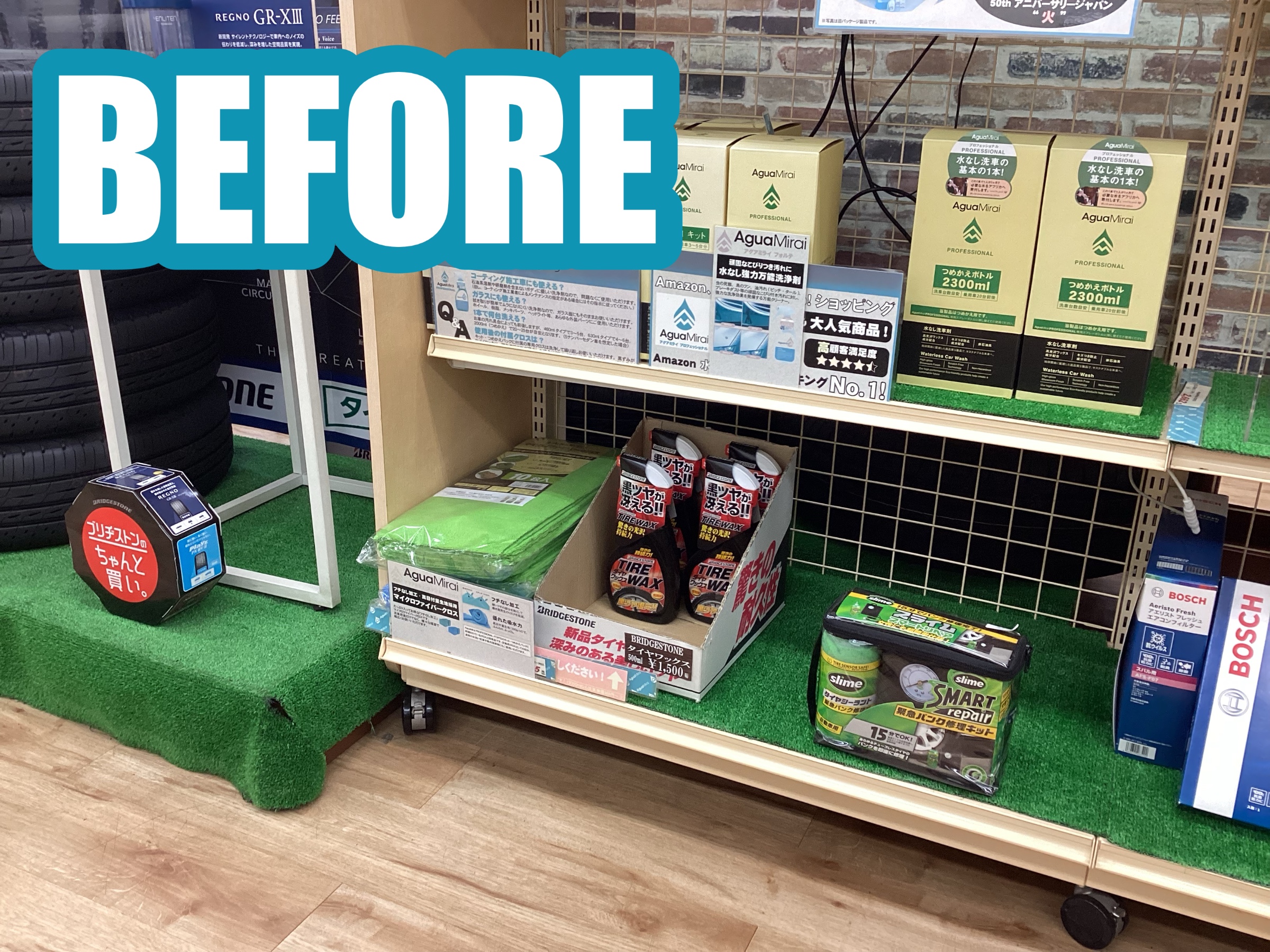 現在、店内に在庫品を展示はしておりますが、置いてある場所やPOPなどが目に留まりにくい状態でした。