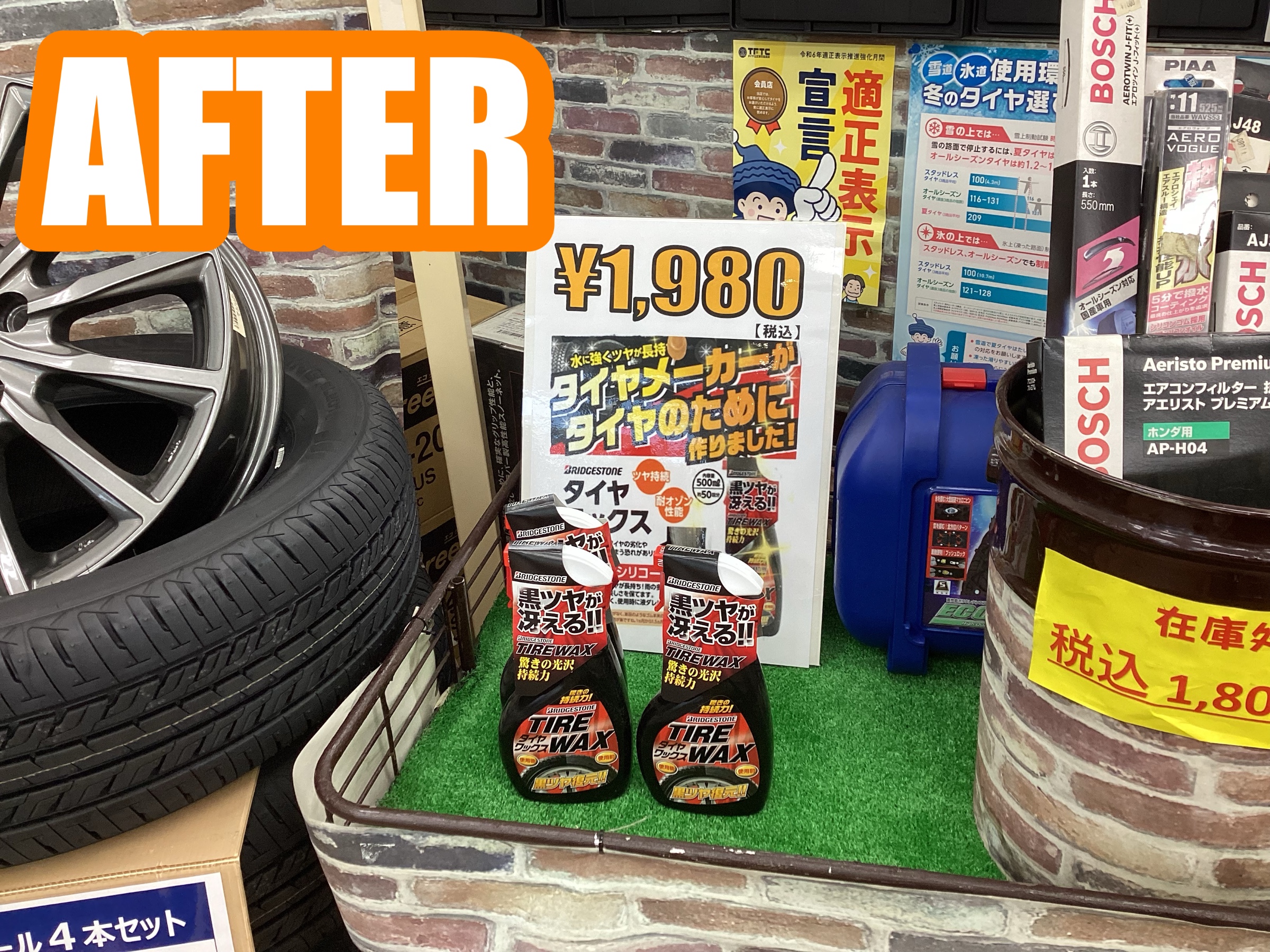 タイヤワックスは常時在庫しておりますので、ぜひお気軽にお買い求めください(^▽^)/