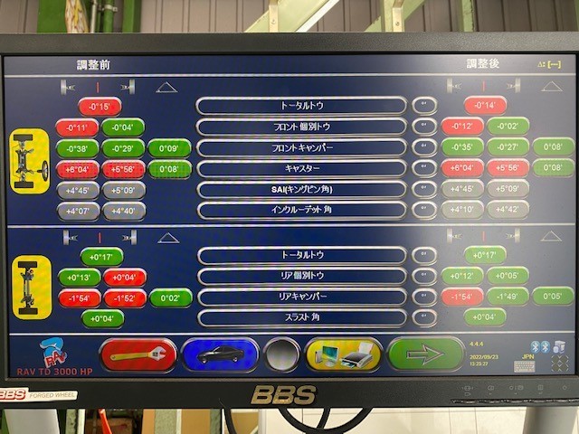 今回は足回り交換でのアライメント調整でしたが