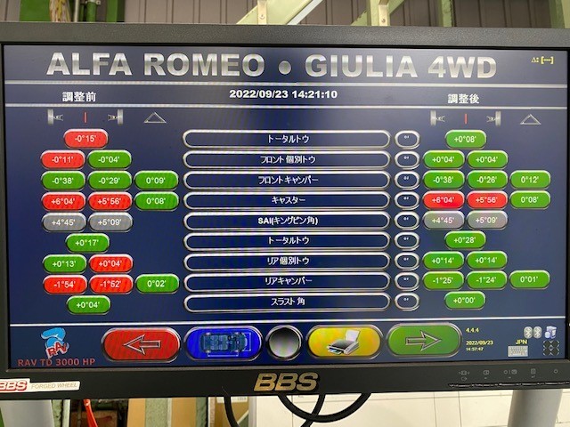 輸入車アライメントもやってます!アルファロメオ ジュリア入庫です!