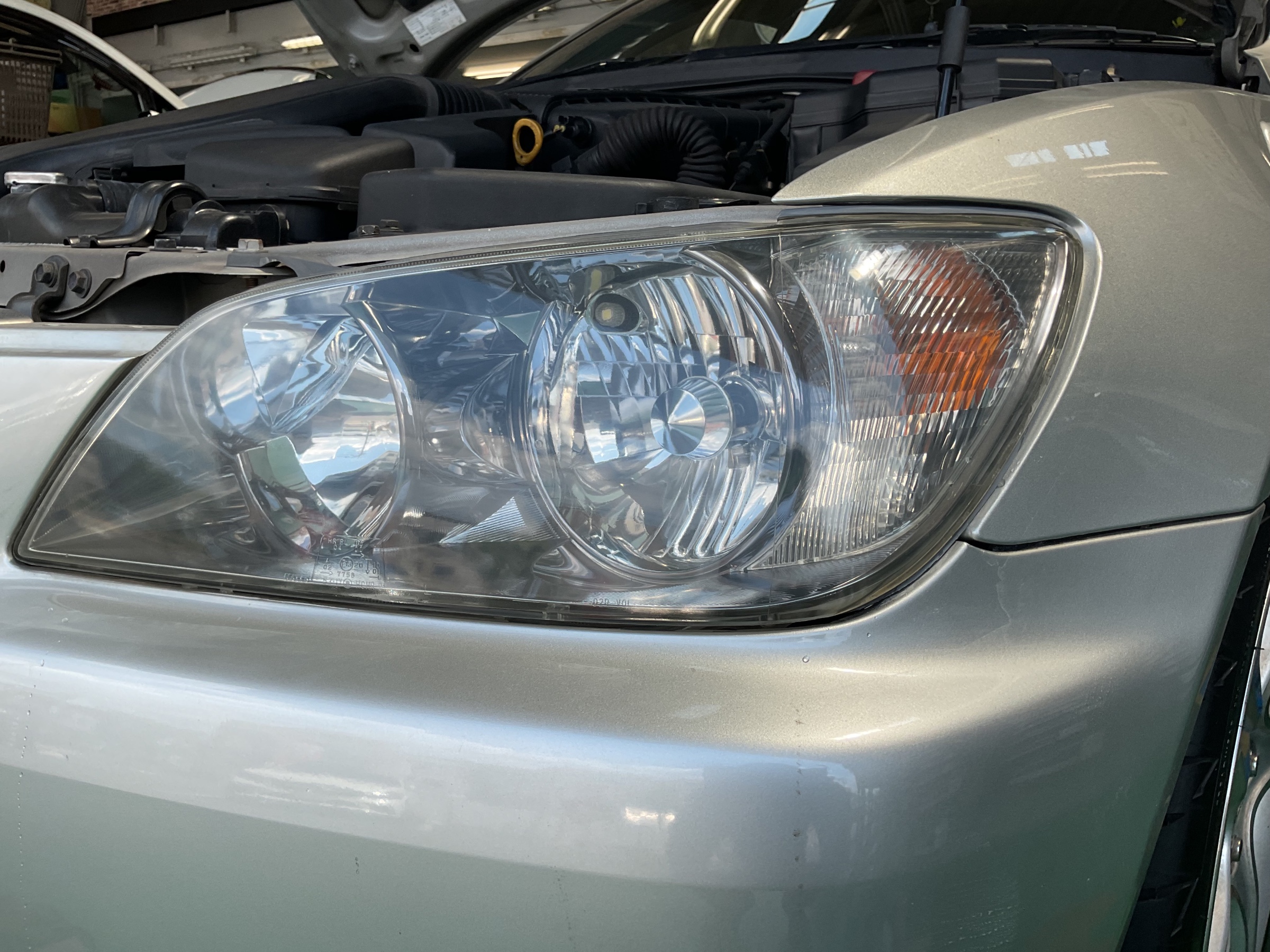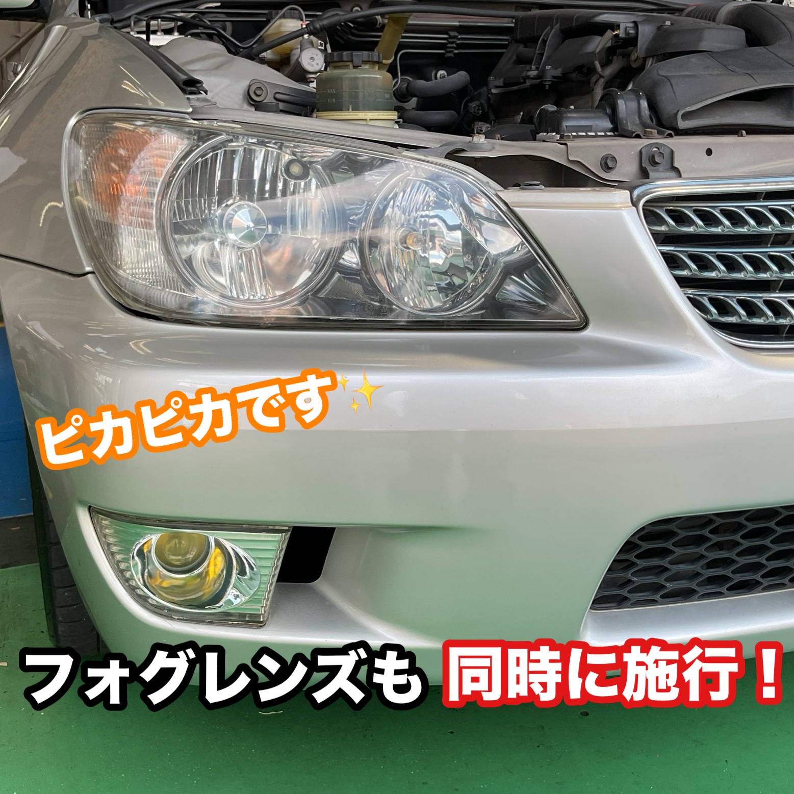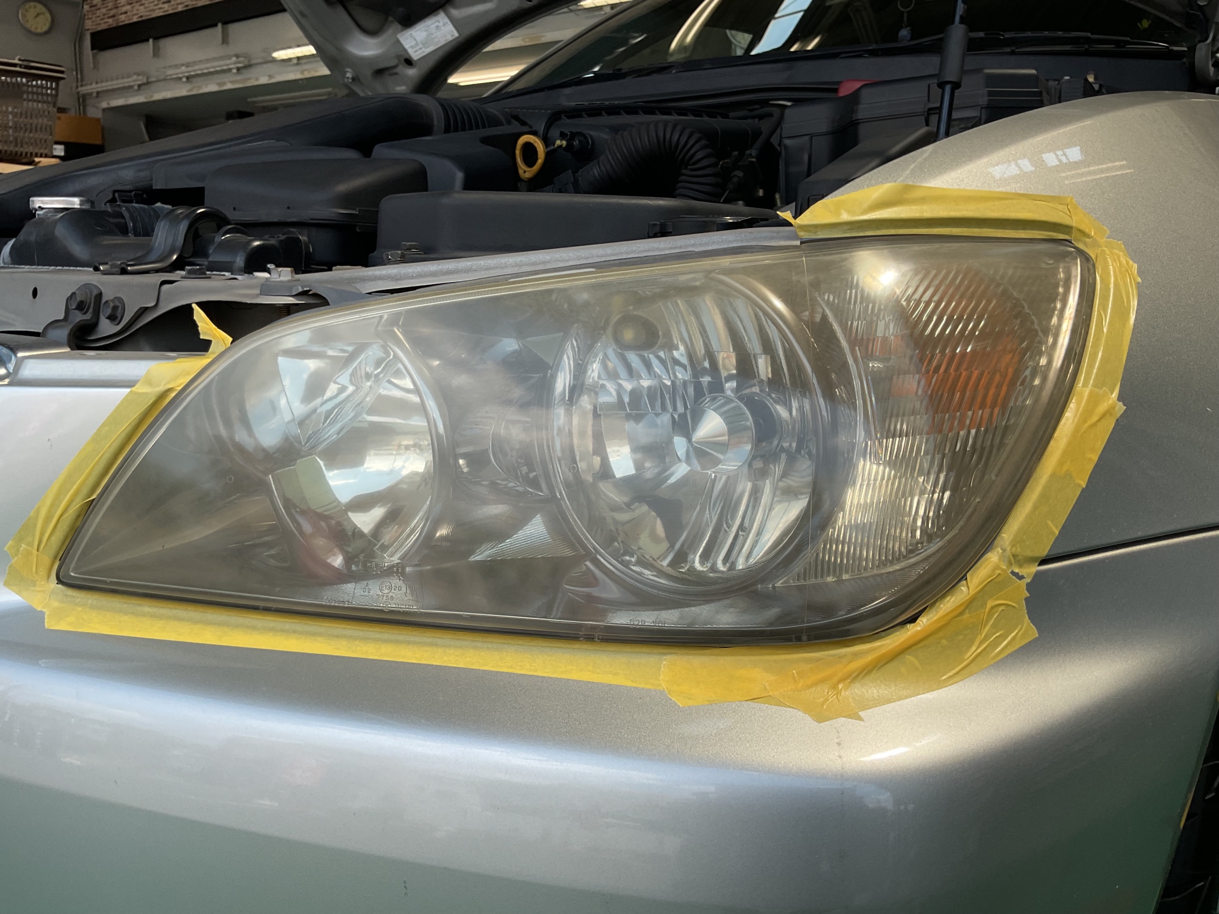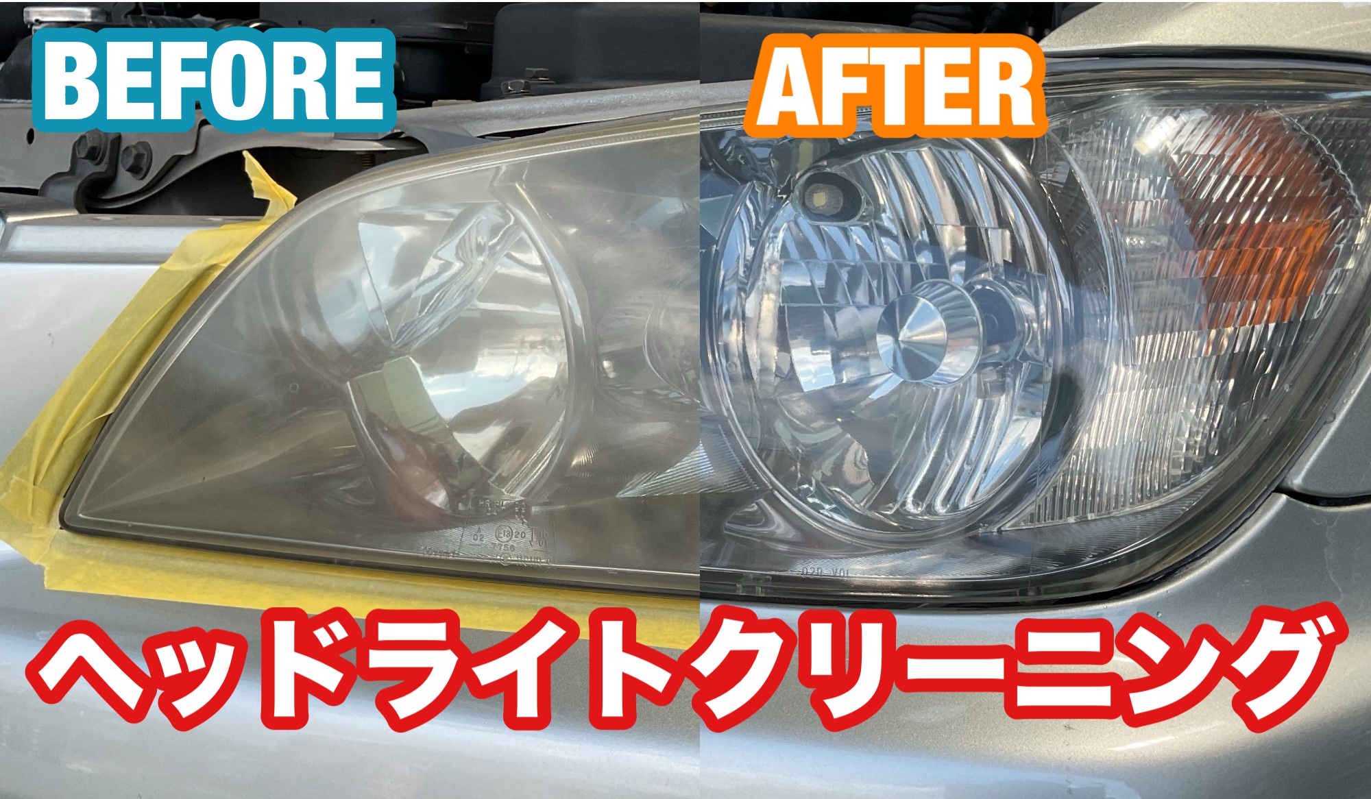 今回のアルテッツァも20年ほど経過しており、ヘッドライトは黄ばみとくもりが目立ちますね。