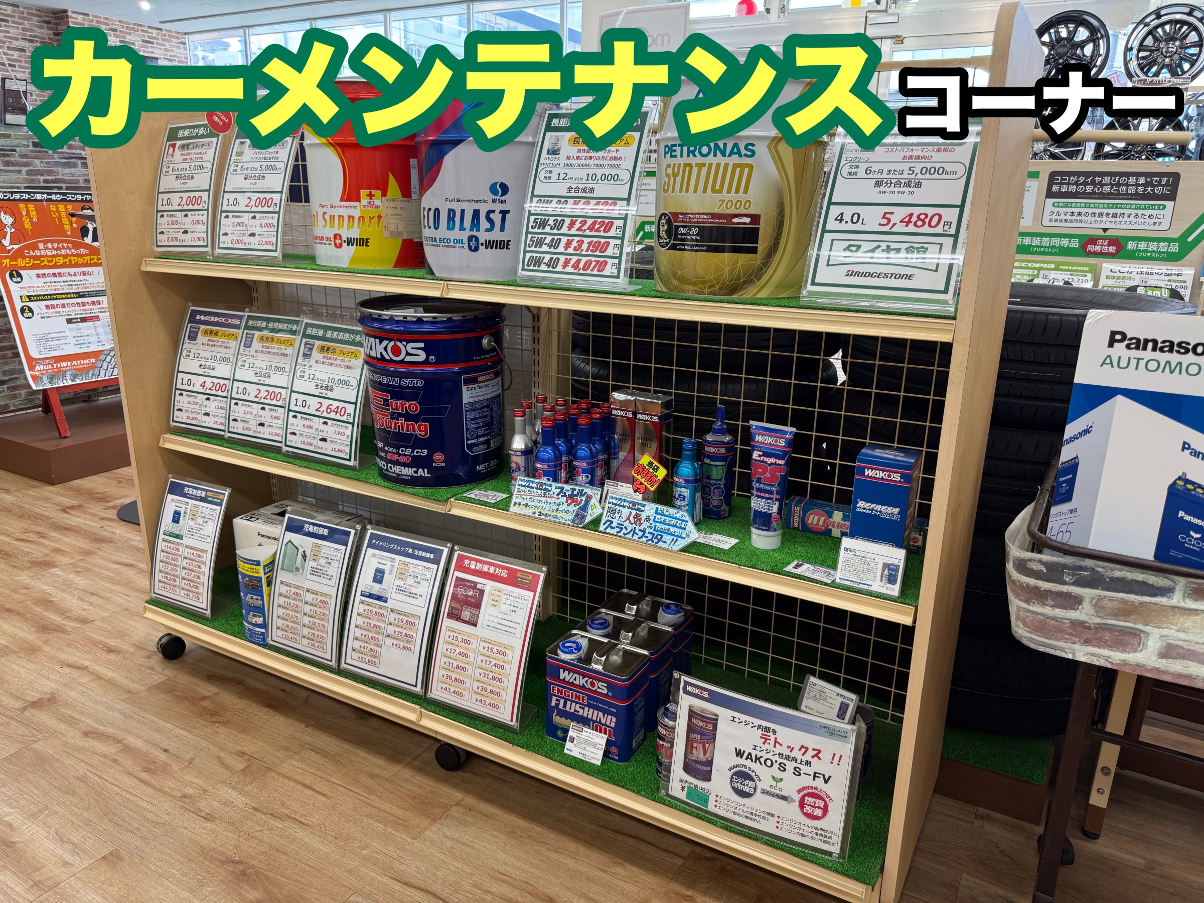 タイヤ館では以前からオイル交換やバッテリー交換などのカーメンテナンスを行っておりましたが、