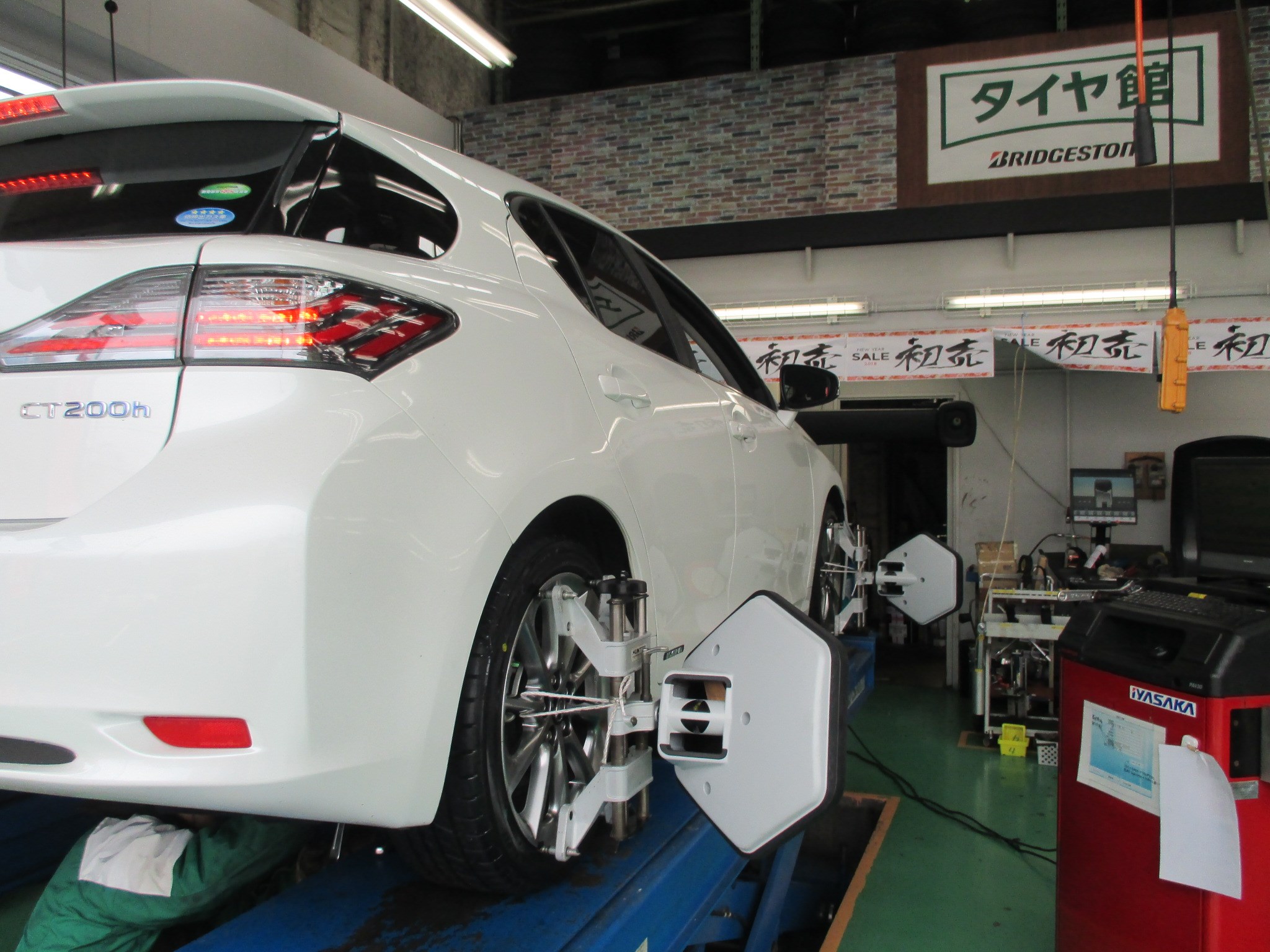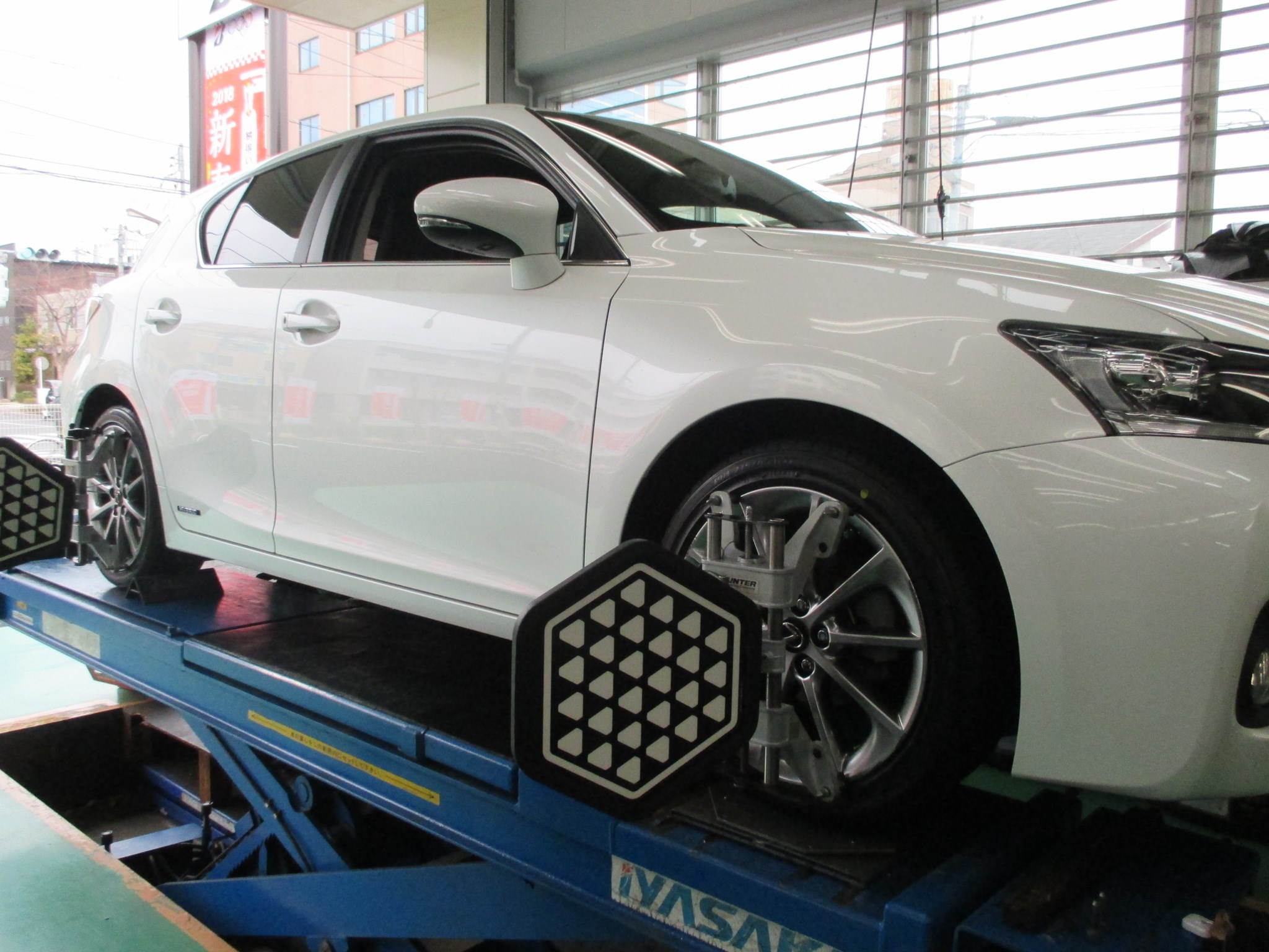 パンクのお車へのアライメント調整
