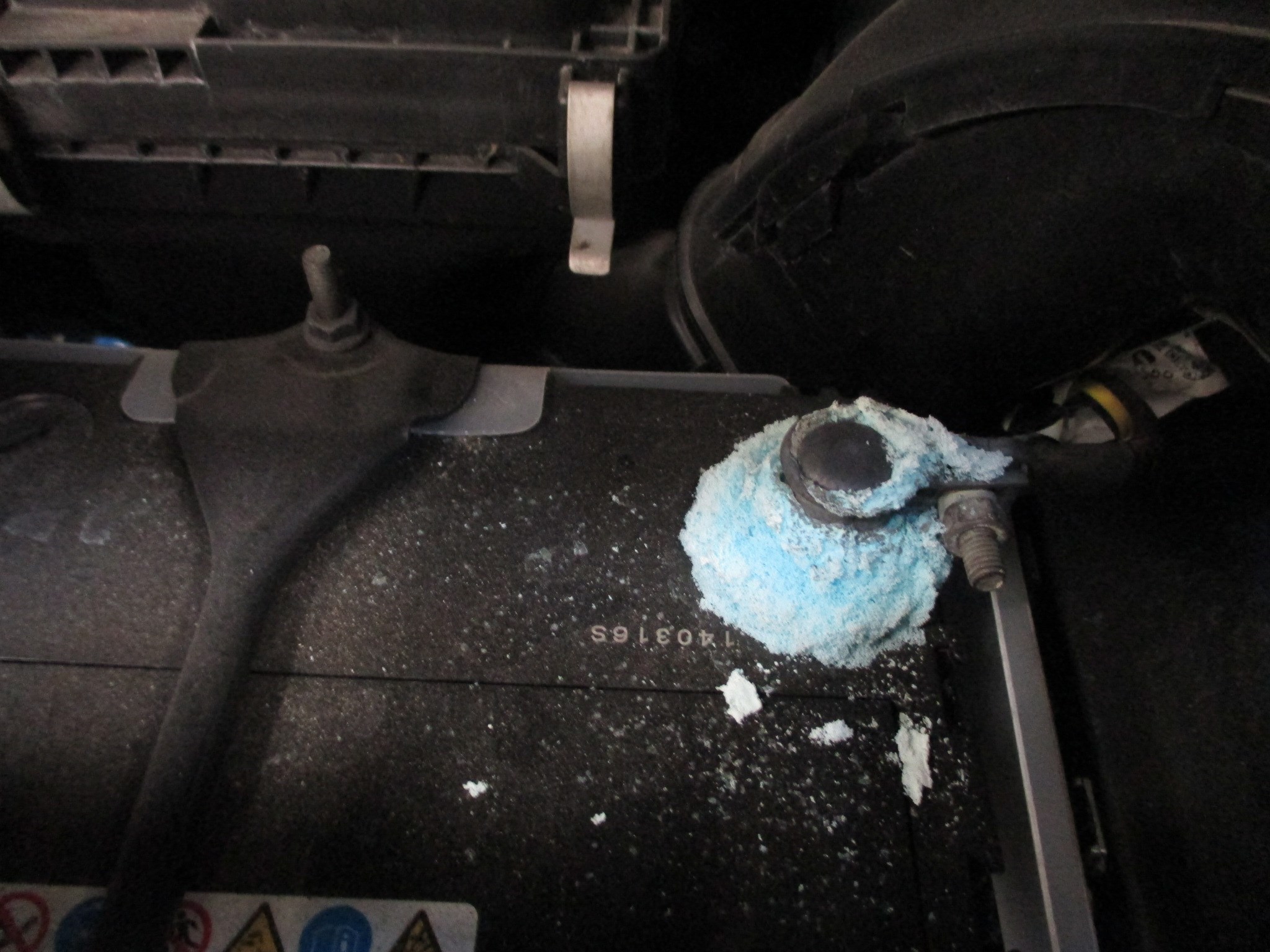 本日はバッテリー端子部分が大変なことになっているお車を発見してしまいました。