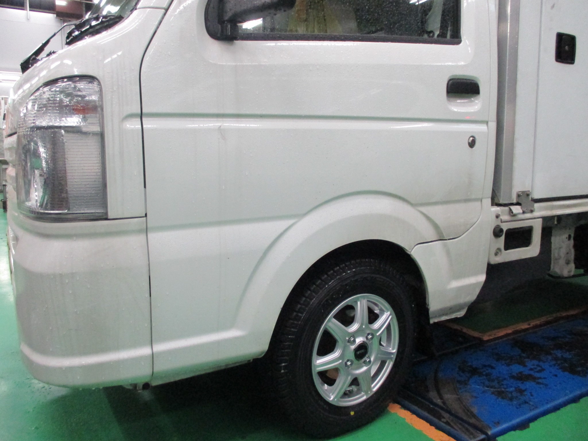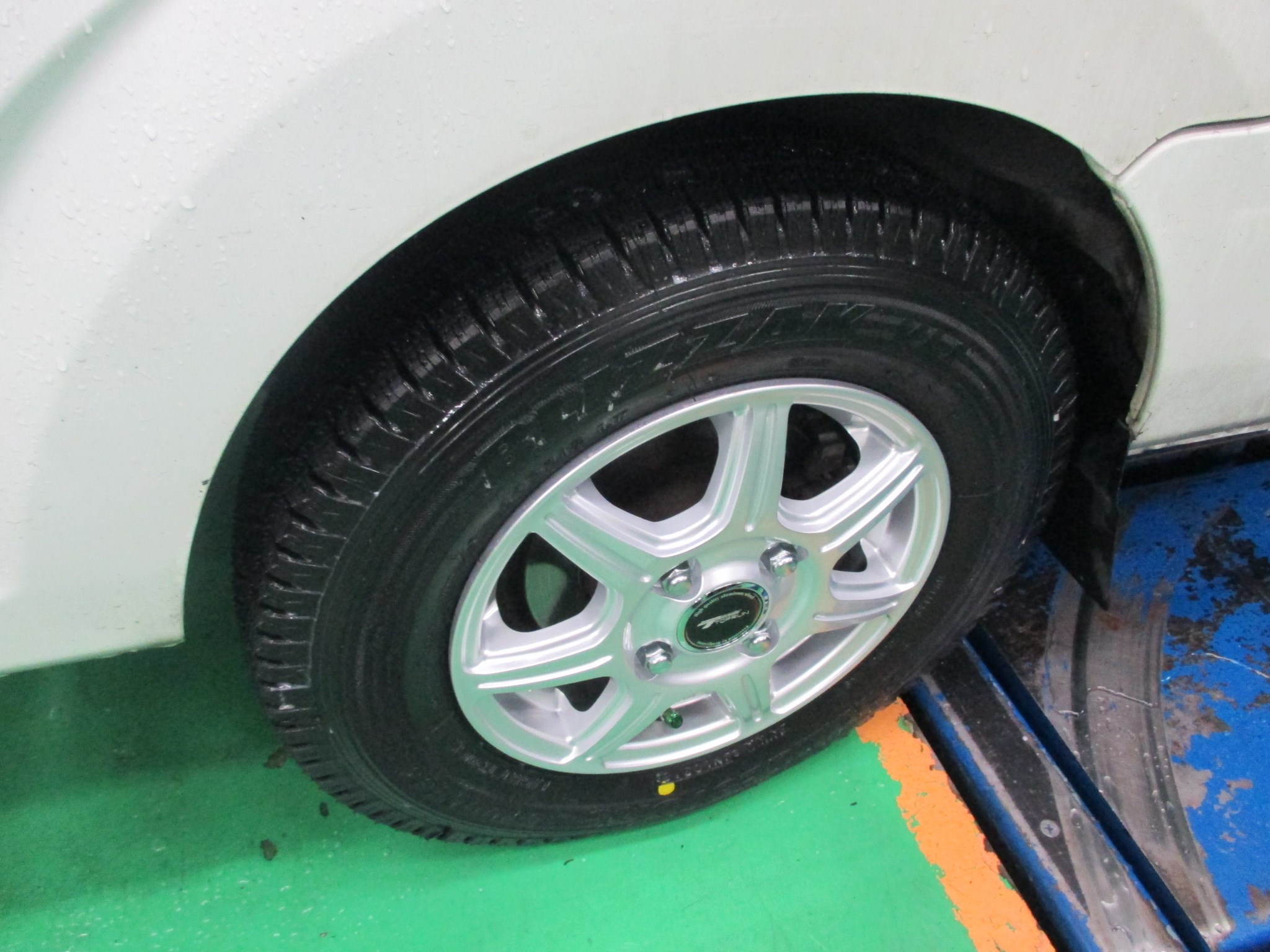 寒くて滑りやすい中、頑張って走ってくれる働く車たちにスタッドレスタイヤを装着しました。