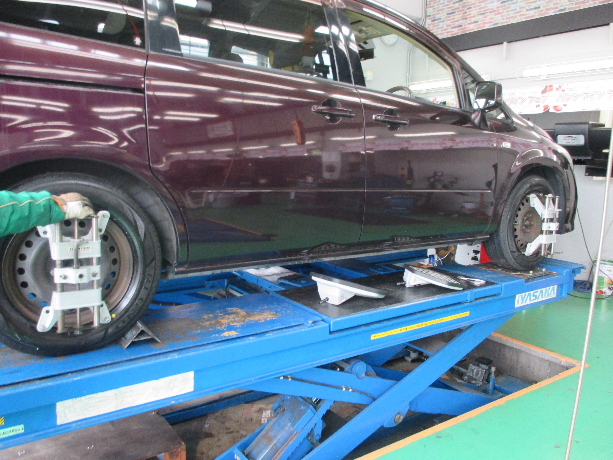 タイヤ交換&アライメント ポスト 2018年2月3日 本日も朝から、タイヤ交換とアライメント測定・調整させていただきました!! タイヤの接地面積は、ハガキ1枚分と言われています。 そのタイヤがちゃんと地面に接地していないと、偏磨耗が起きたり、乗り心地が悪くなったり、真っ直ぐ走らなかったりします=タイヤの寿命が早くなります。 せっかく新品のタイヤ買うなら少しでも長く使いたくないですか??それをお手伝いできるのが、専門店であるタイヤ館です!!