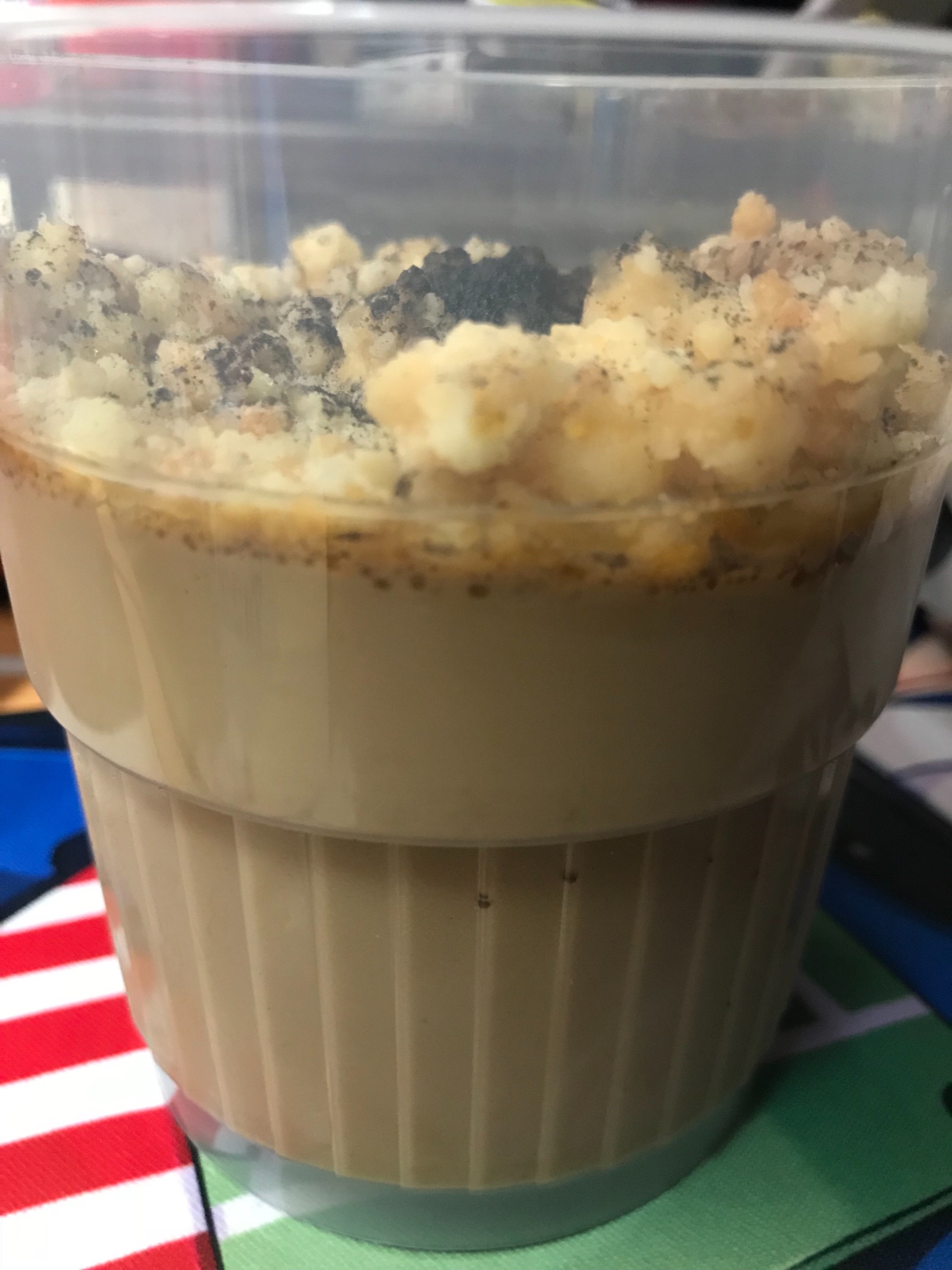 中はほろ苦いプリンと上にクッキー?でしょうか?散りばめられてました(*´ω`*)