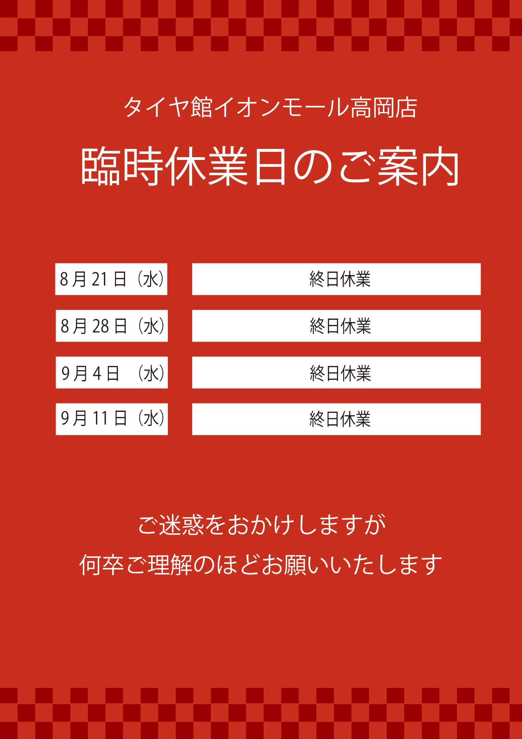 誠に勝手ながら、下記に日程は臨時休業とさせていただきます。