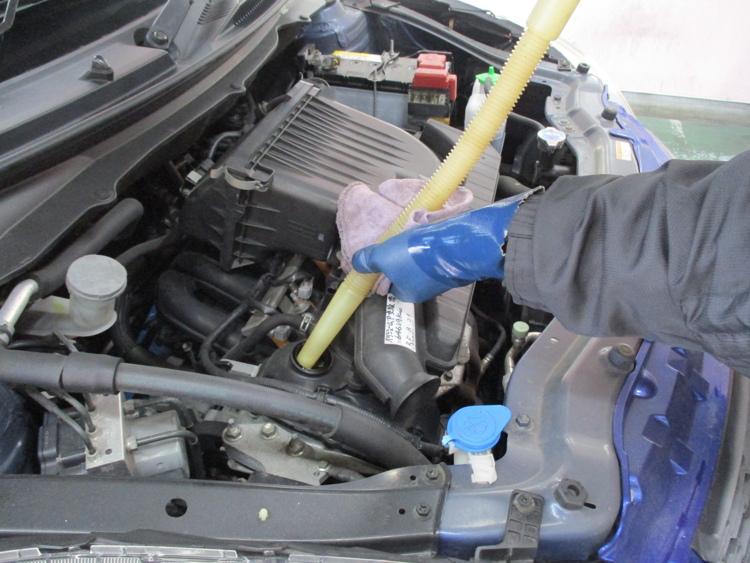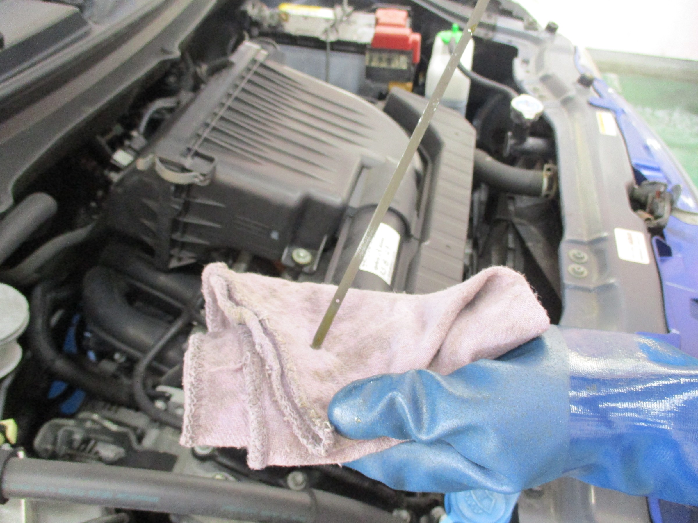最後にゲージでオイル量を確認して作業完了!