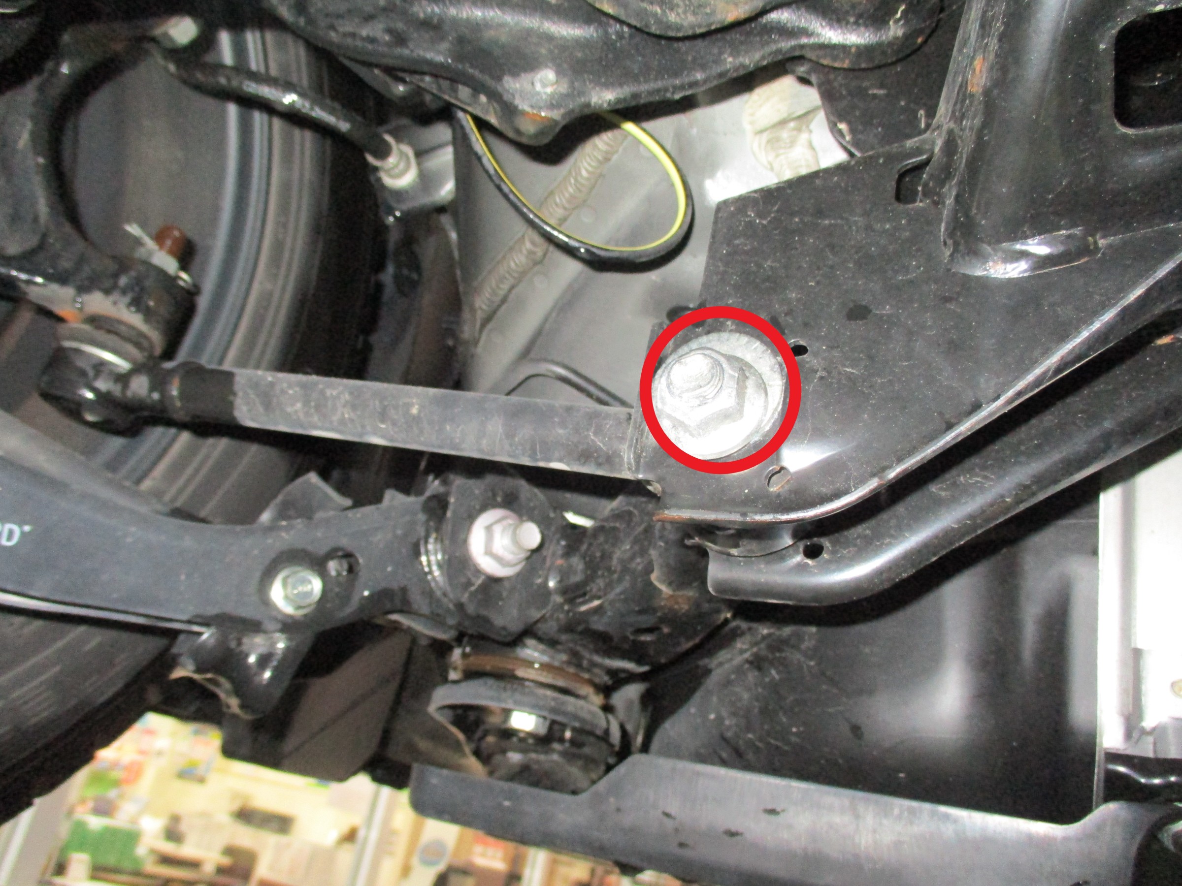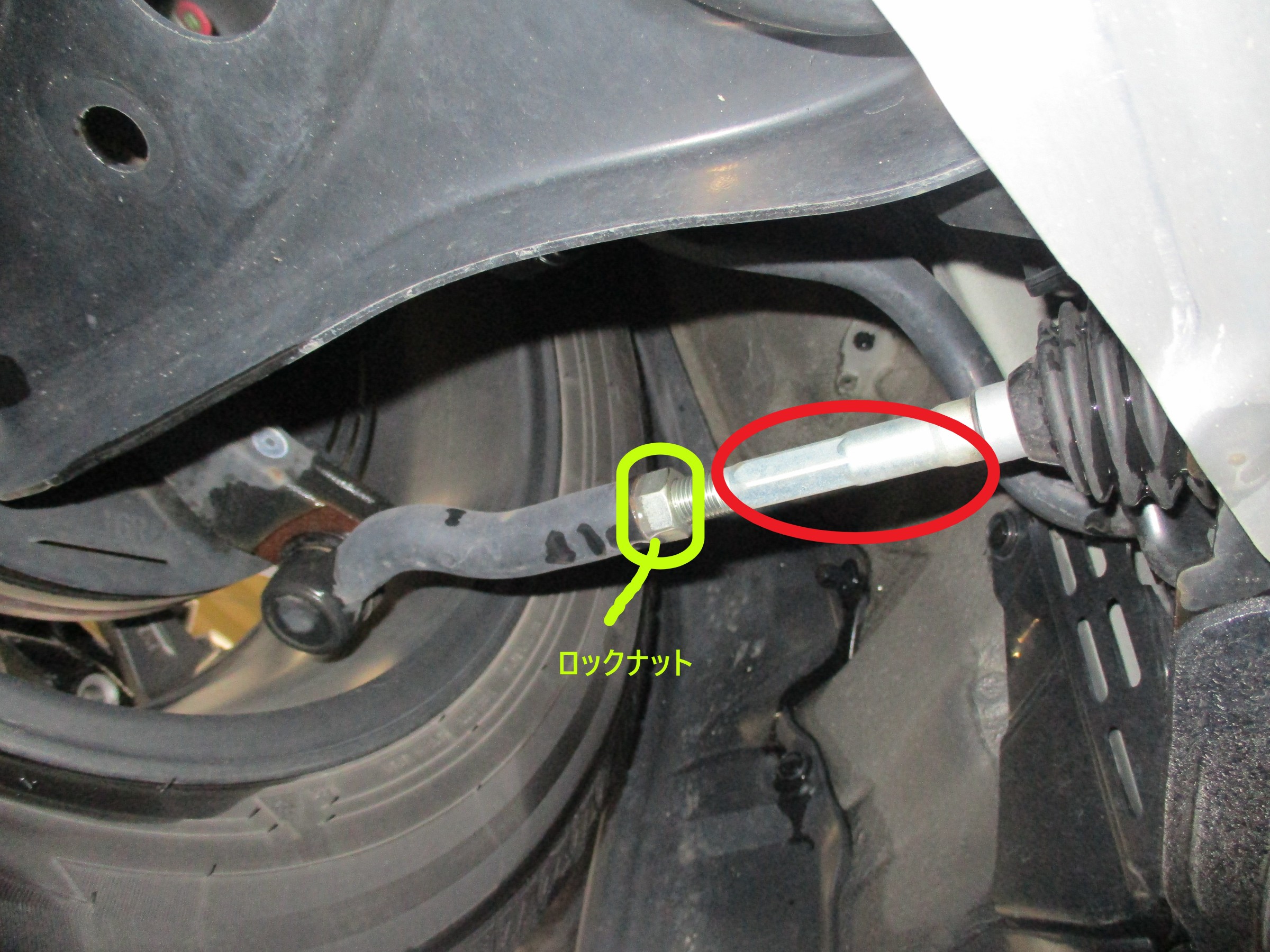 赤丸の部分がリアの調整箇所になります。