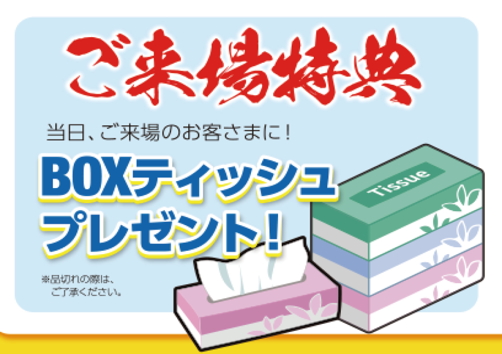 ご来場特典で「ボックスティッシュ」プレゼント!!