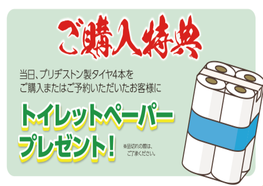 タイヤ4本ご成約で「トイレットペーパー」プレゼント!