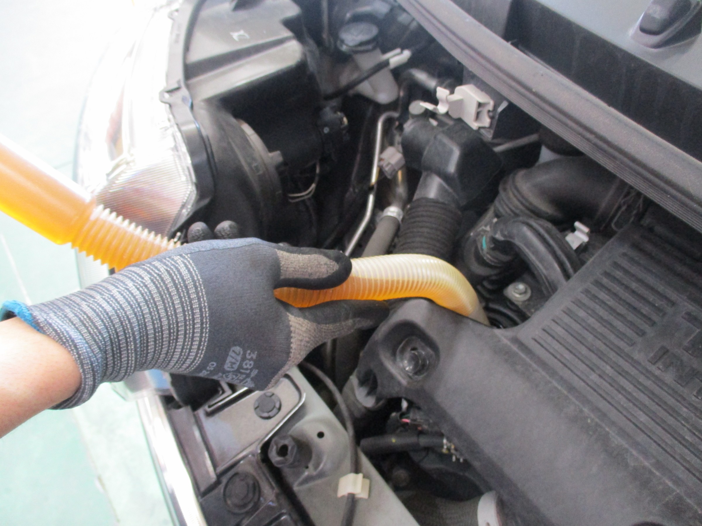 ボルトもエレメントも締め付け、新しいオイルを入れていきます