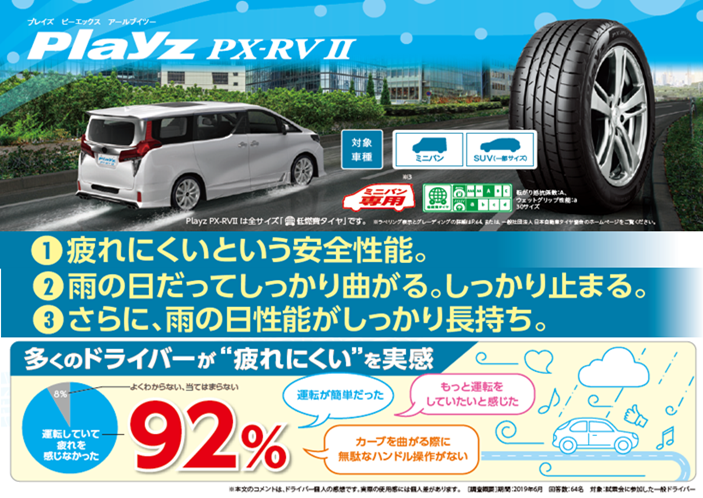 プレイズシリーズの「疲れにくい」は継承しつつ雨の日の安全を考え、新品時から摩耗時まで濡れた路面での性能を重視し考えられたタイヤです。
