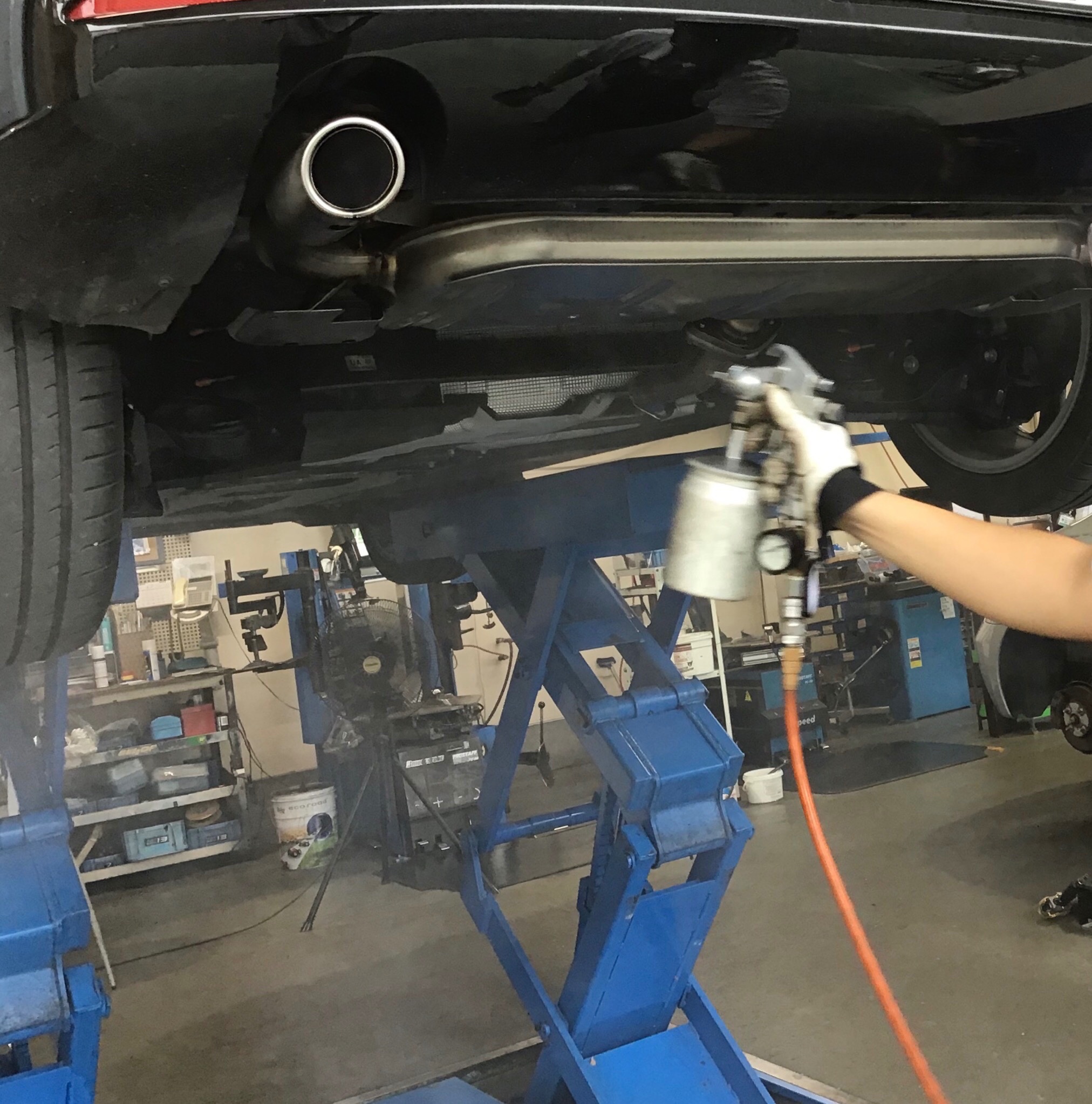 塩分に反応して被膜をつくりサビにくくするのが特徴で、熱に強いのでマフラーにも施工が出来るんです!!