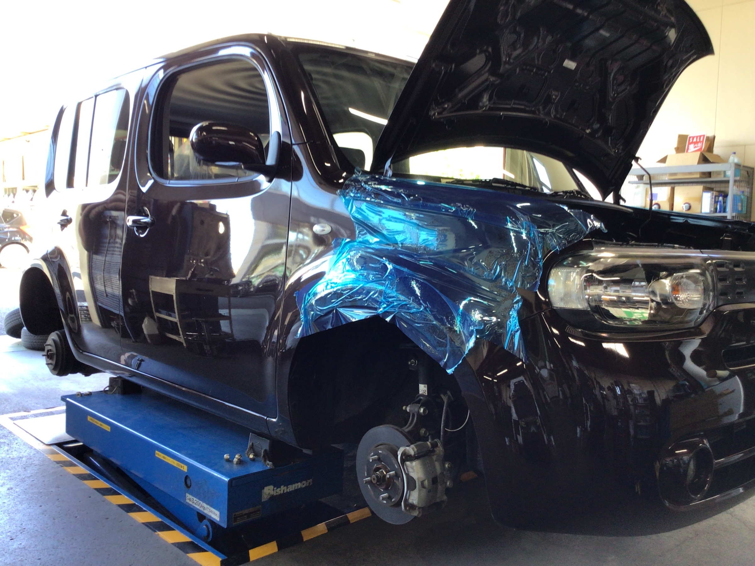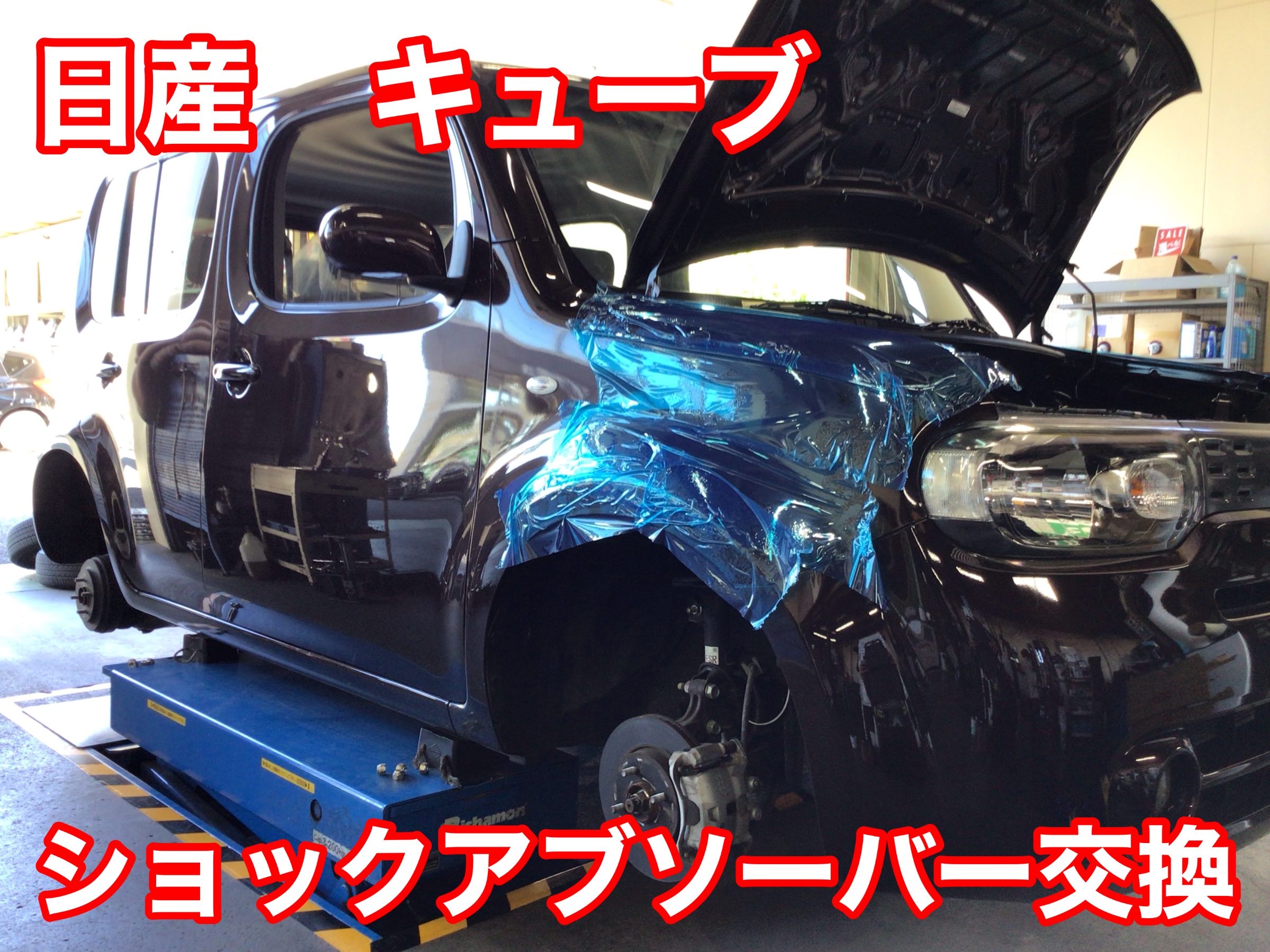 本日は、日産 キューブのショックアブソーバー&スプリング交換を致しました。