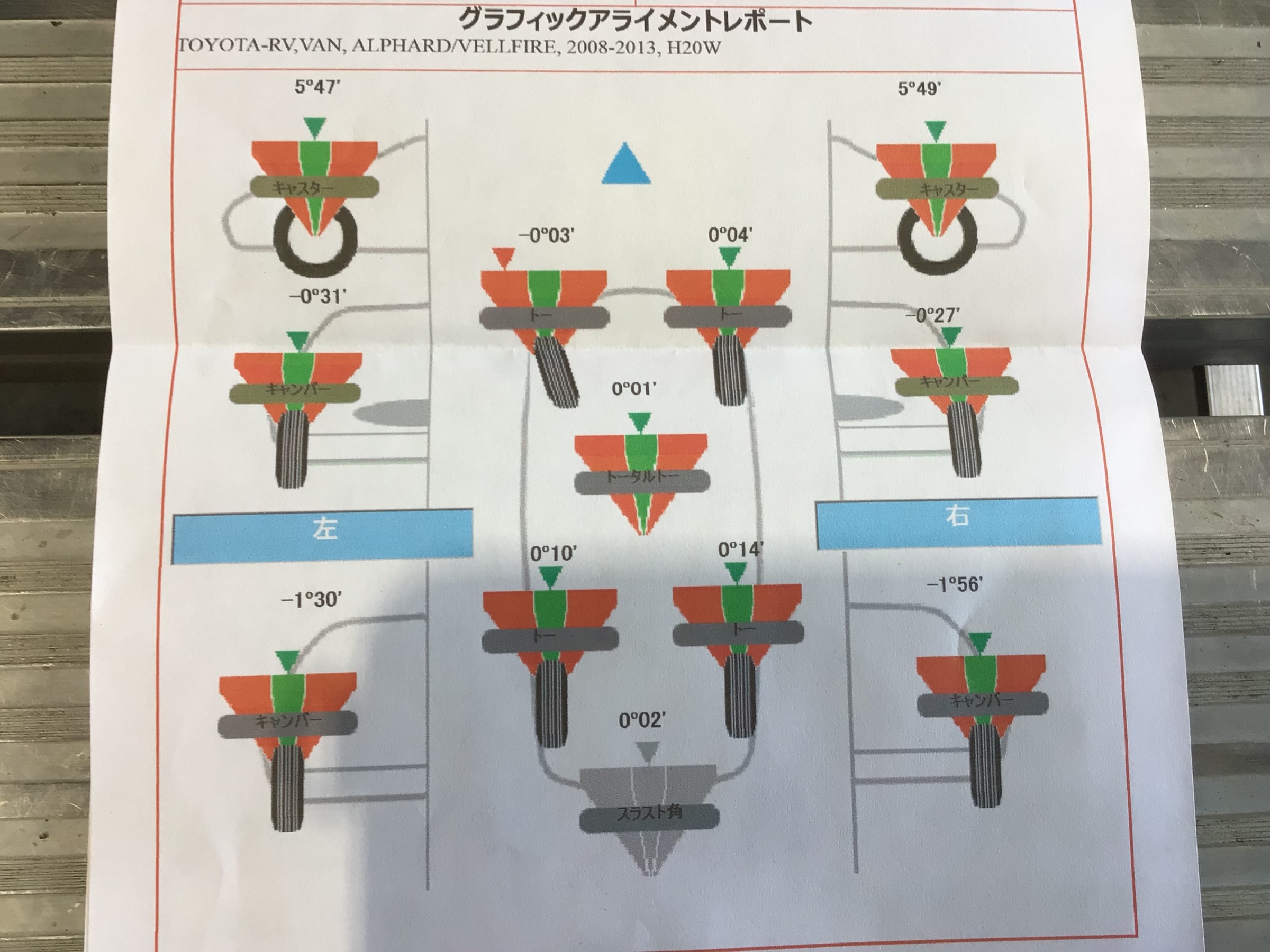本日は、トヨタ アルファード のアライメント調整を行いました。