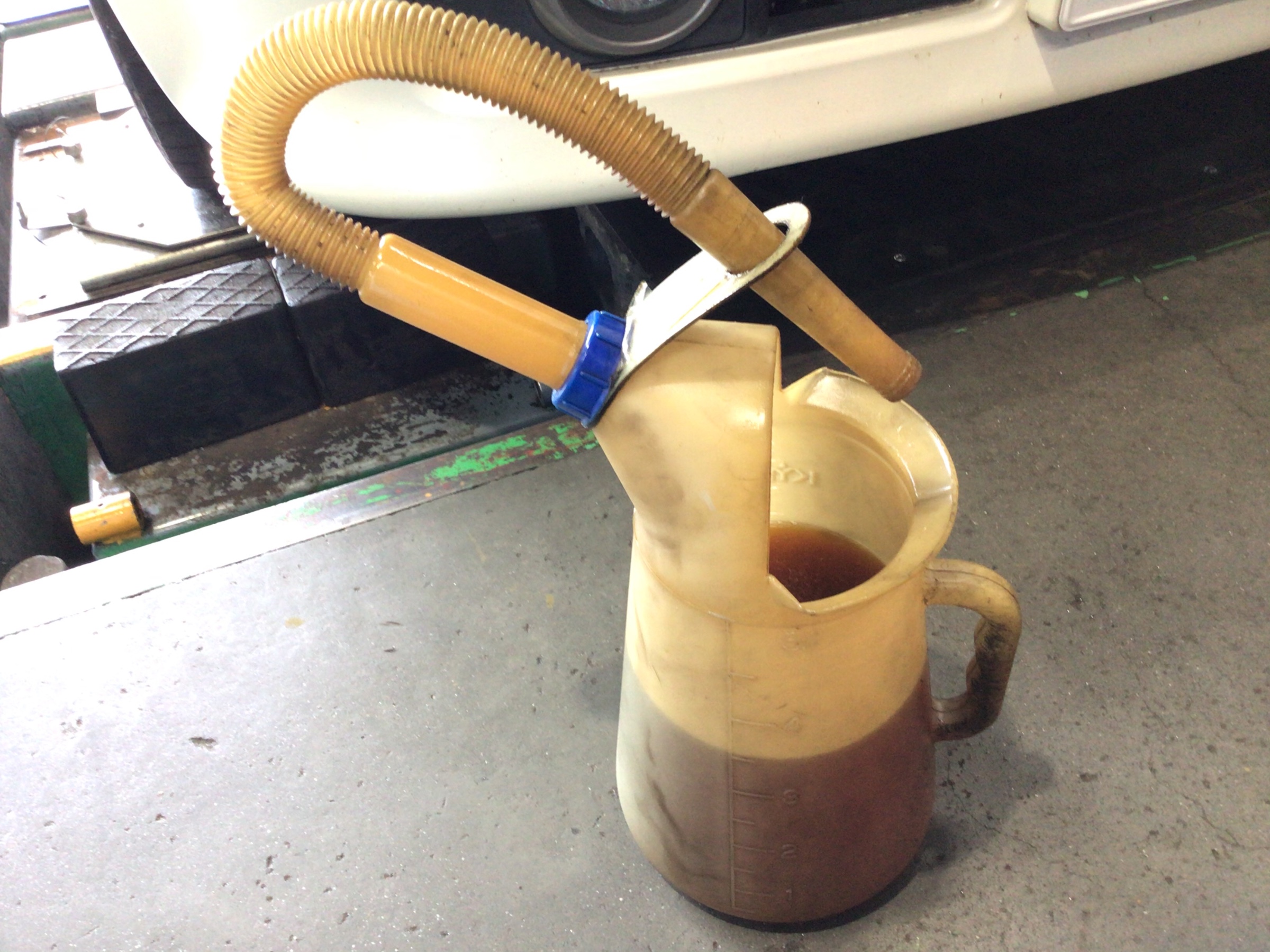 ↑まずは、汚れたエンジンオイルを抜き取ります。