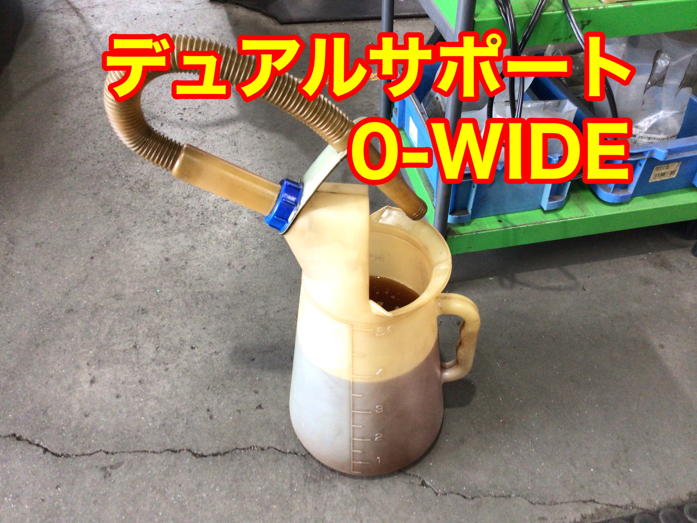 ↑今回使用したオイルは、部分合成油の「デュアルサポート 0-WIDE」です。