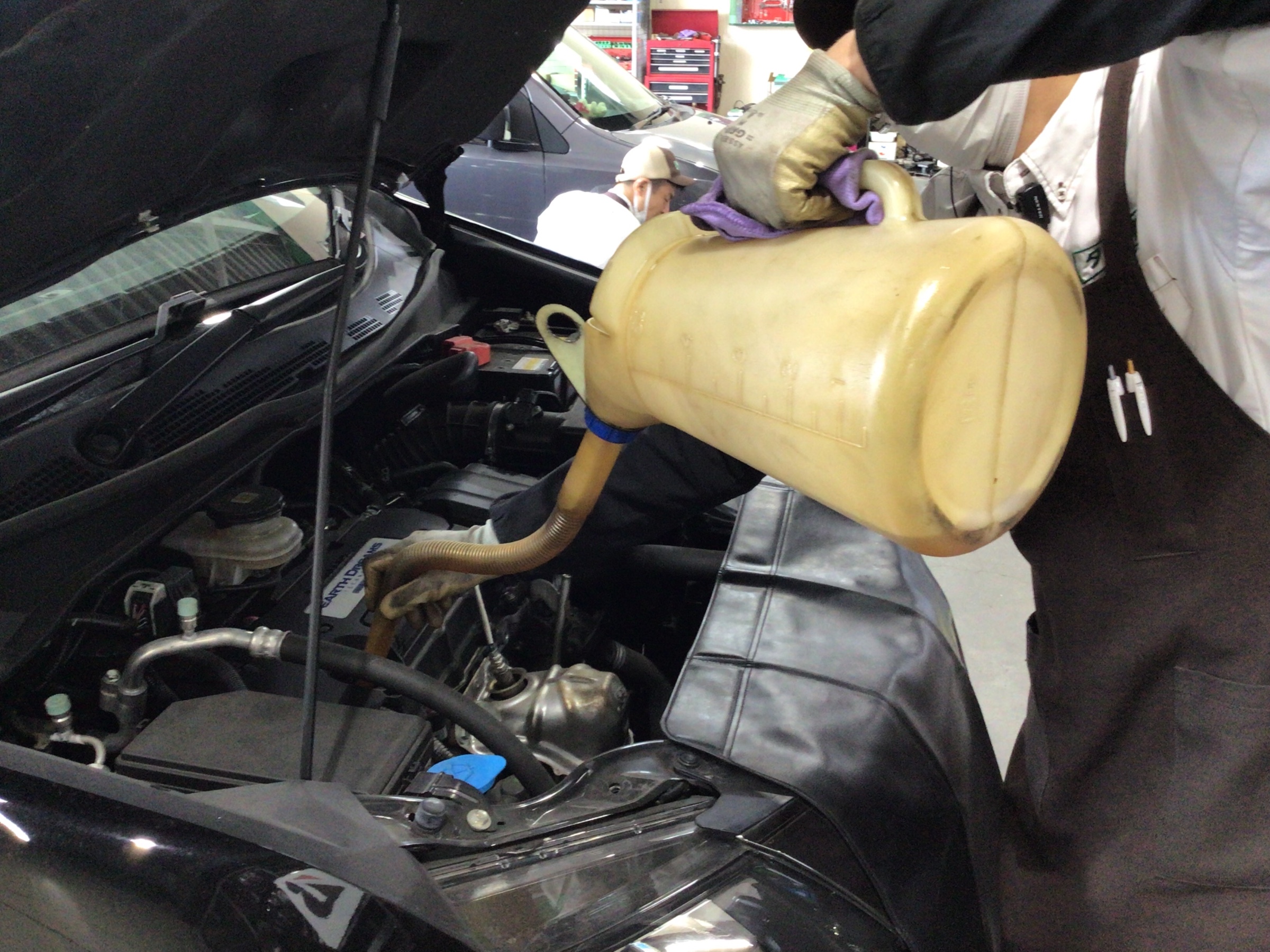 ↑オイルを抜き終わったら、新しいエンジンオイルを注入し、作業完了です。