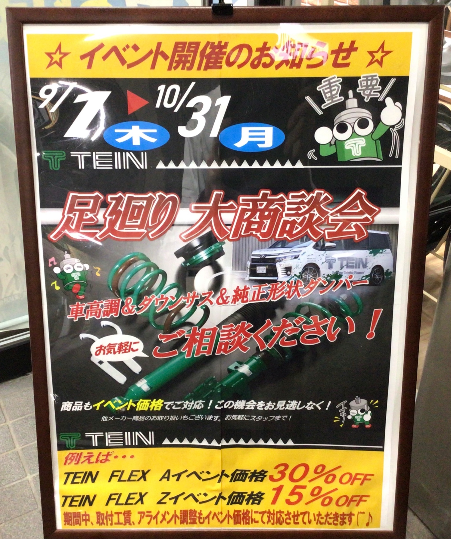 当店では、9/1(木)〜10/31(月)の期間、「TEIN 足まわり大商談会」を開催しております。