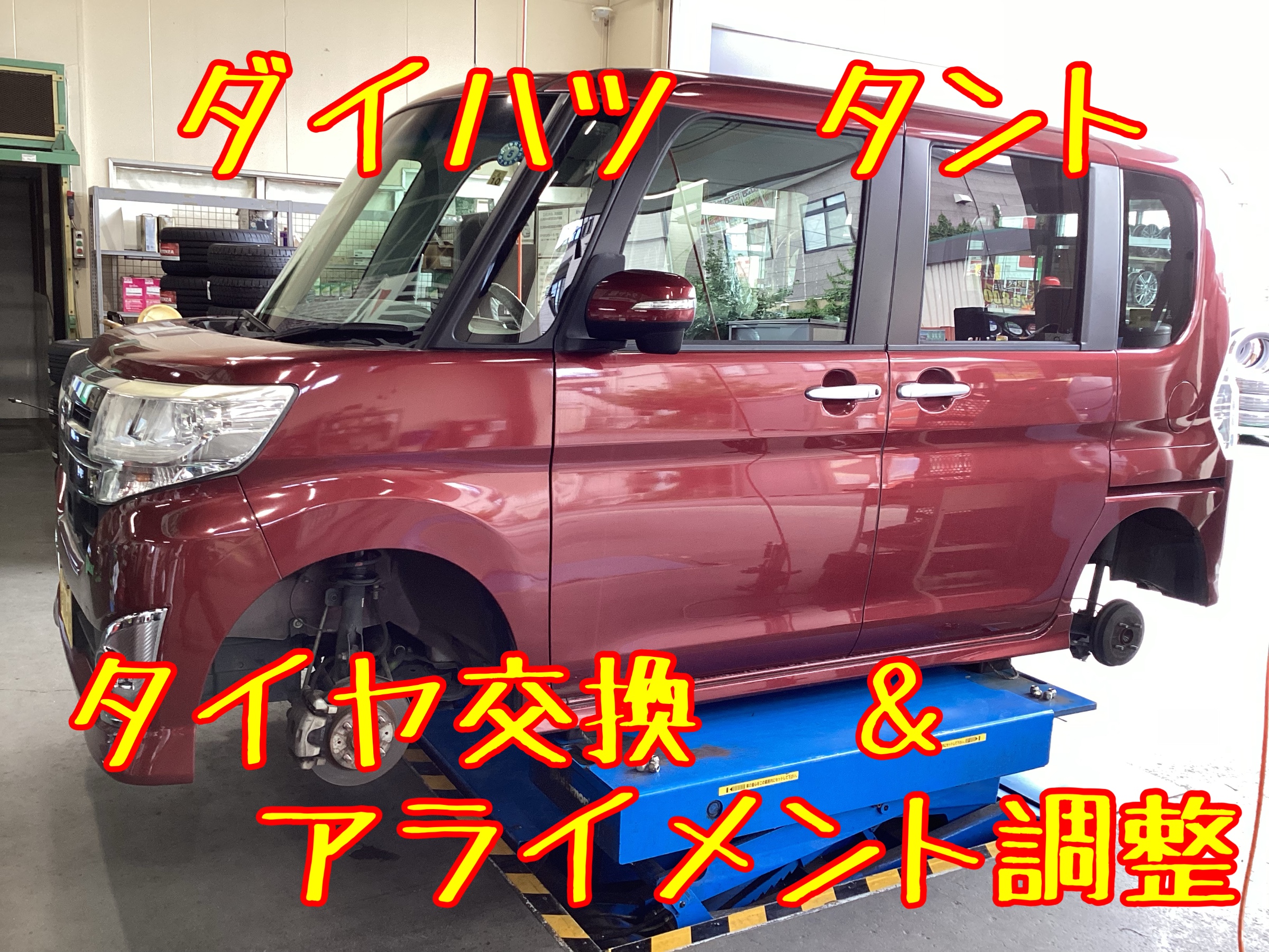 ダイハツ タント タイヤ交換&アライメント調整作業