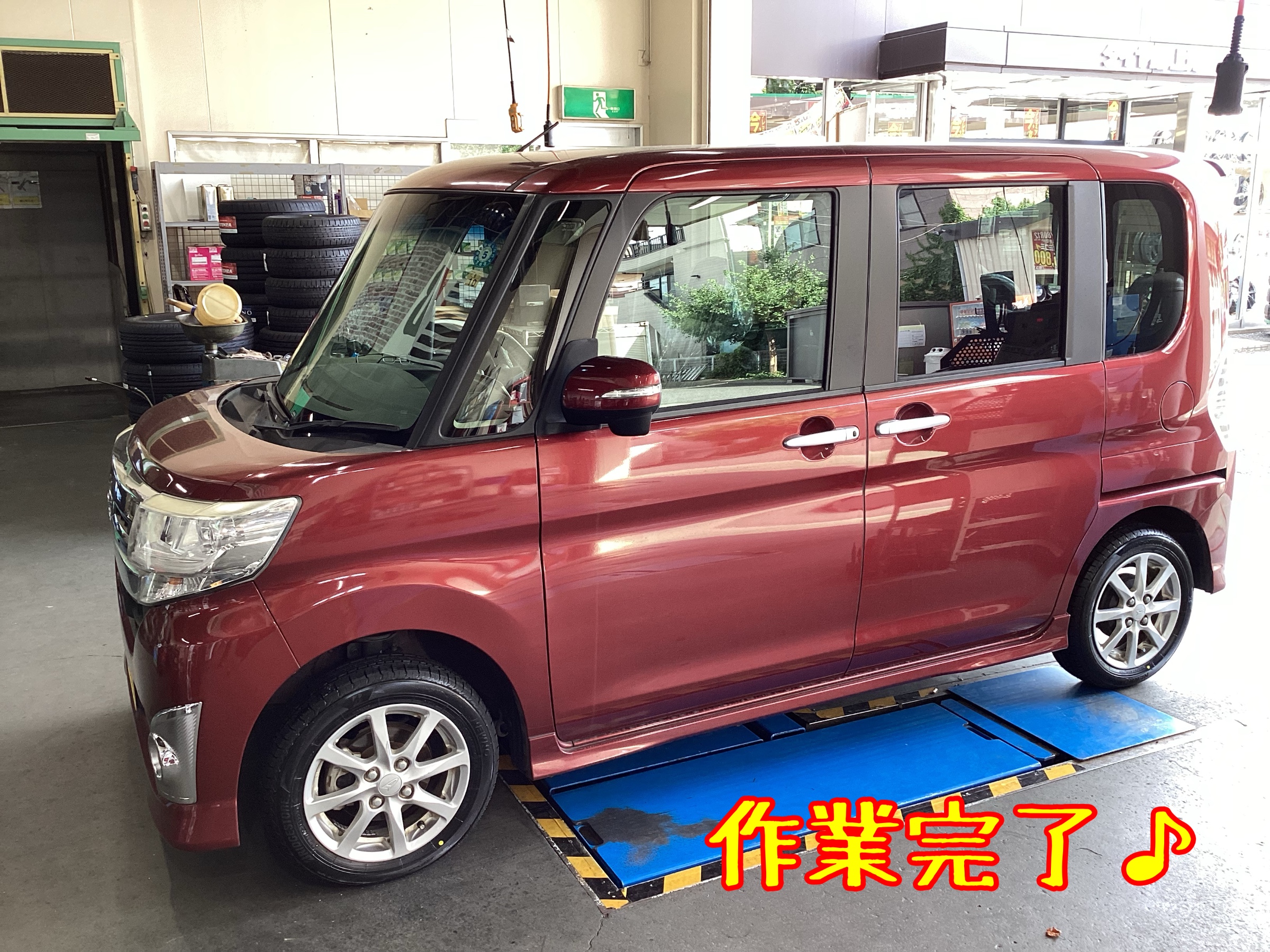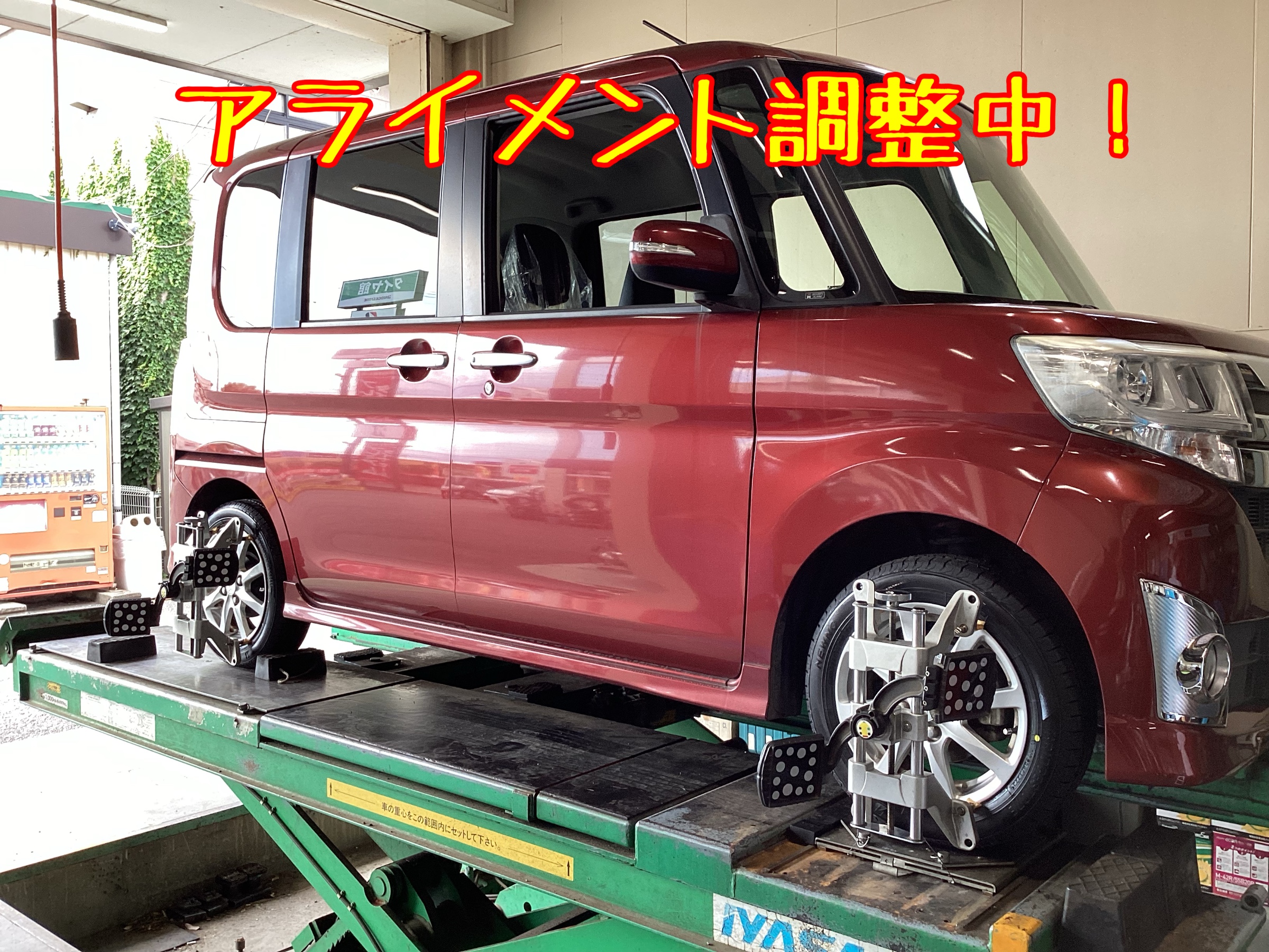 本日は、ダイハツ タントのタイヤ交換&アライメント調整作業を行いました。