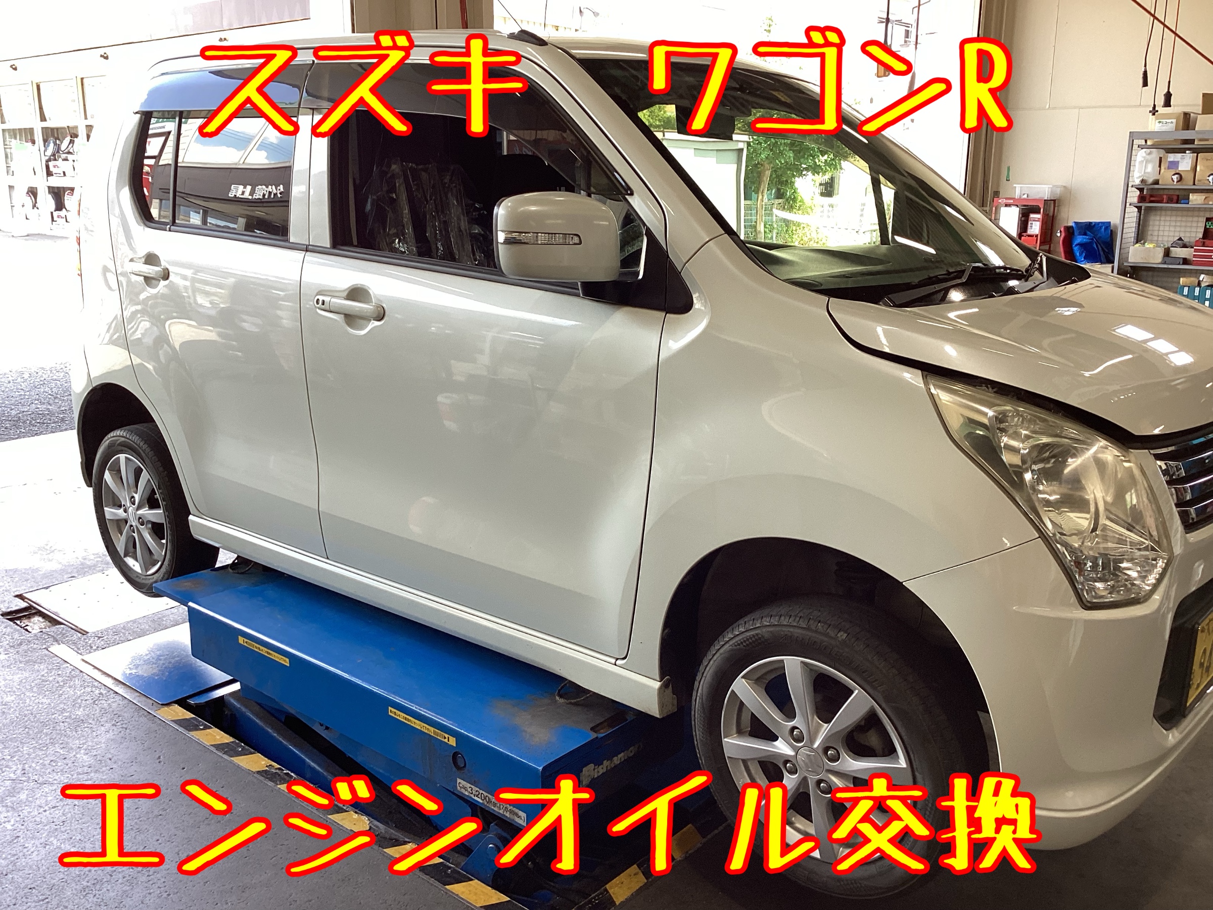 本日は、スズキ ワゴンR のエンジンオイル交換を行いました。