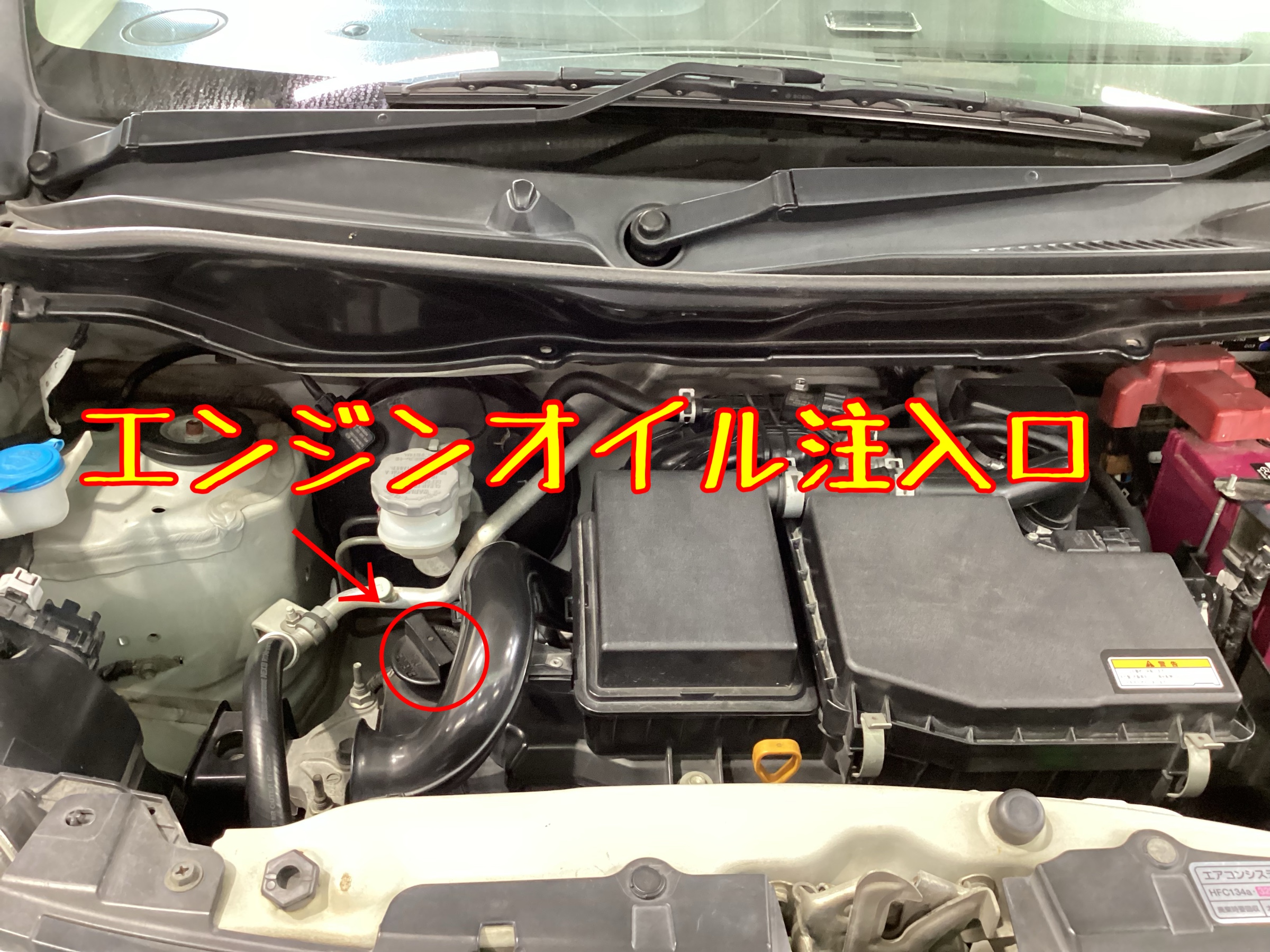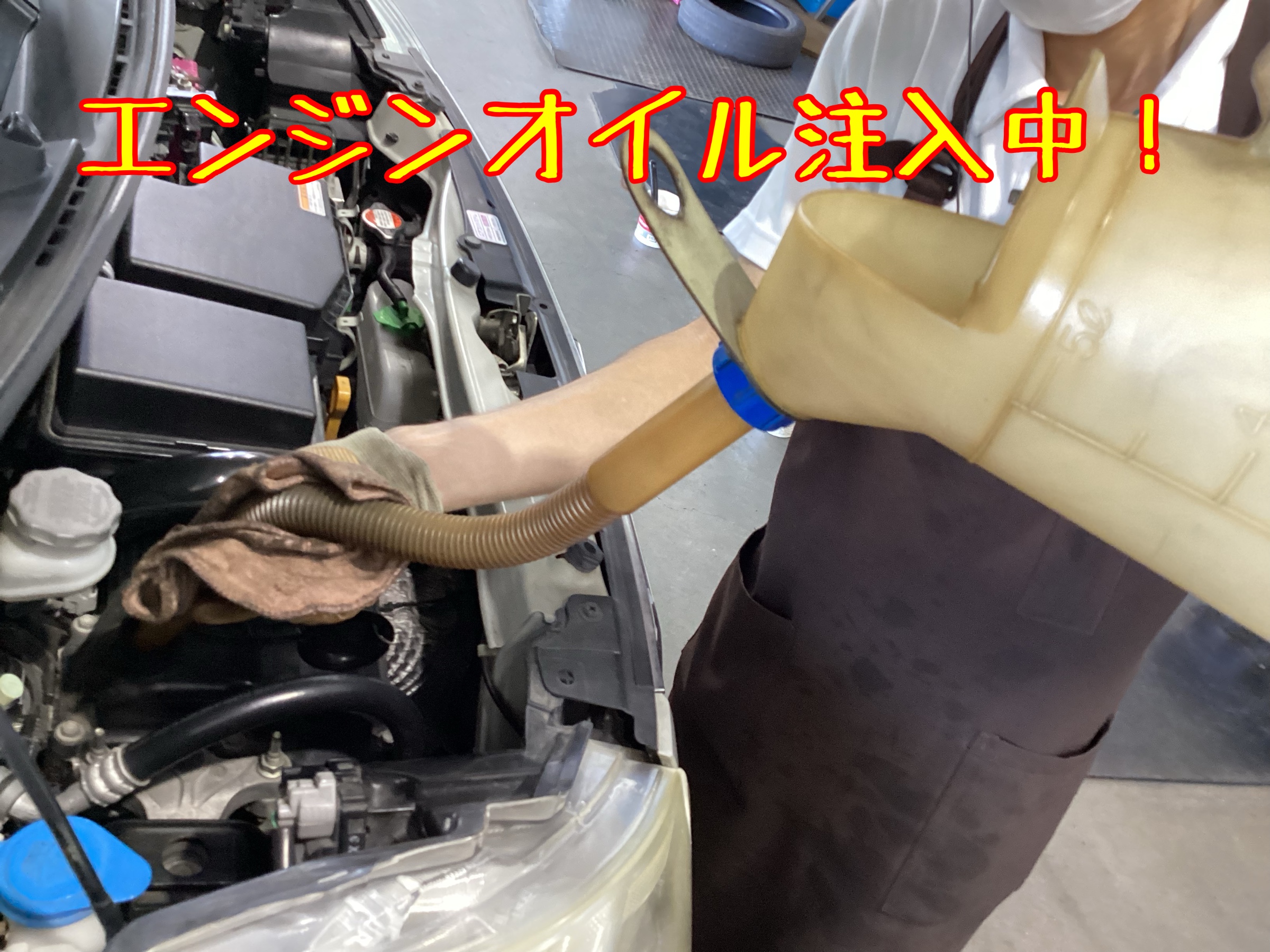 ↑エンジンオイル注入口よりエンジンオイルを規定量入れて、作業完了です!