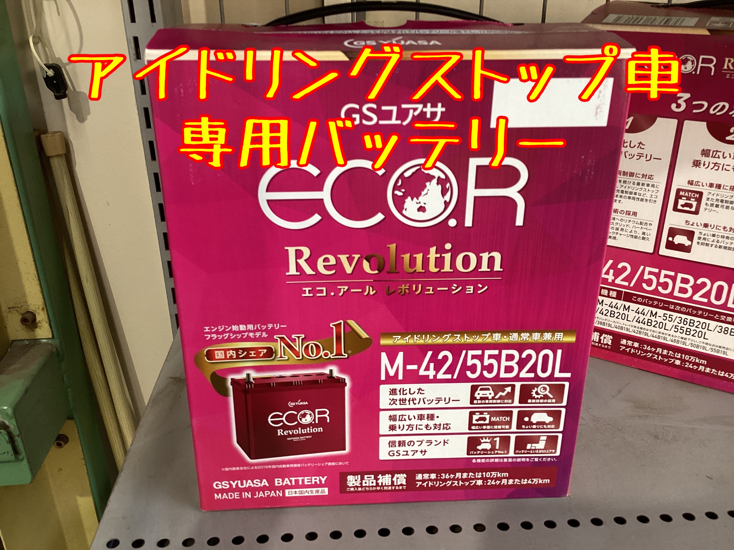 ↑今回お選びいただいたバッテリーは、アイドリングストップ車専用バッテリー「GSユアサ エコRレボリューション」です。
