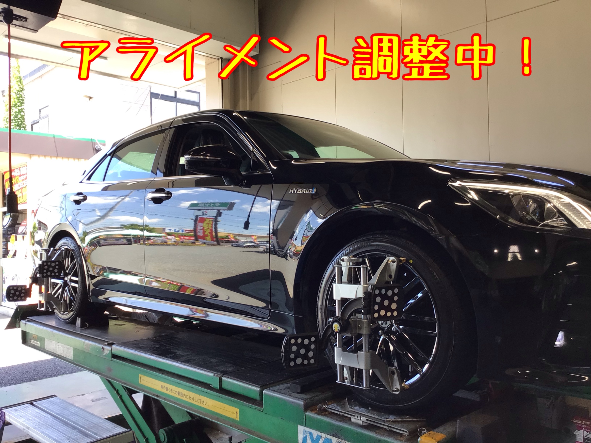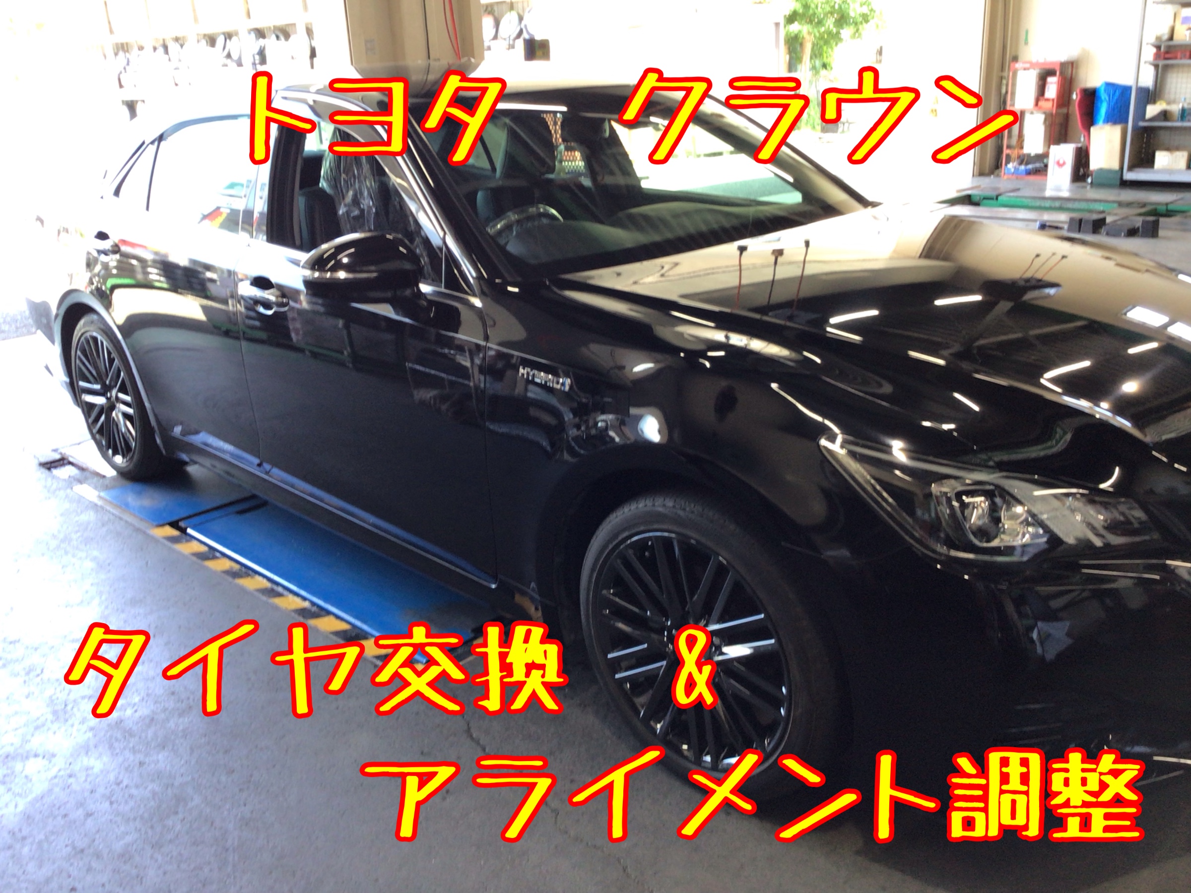 本日は、トヨタ クラウン のタイヤ交換&アライメント調整作業を行いました。
