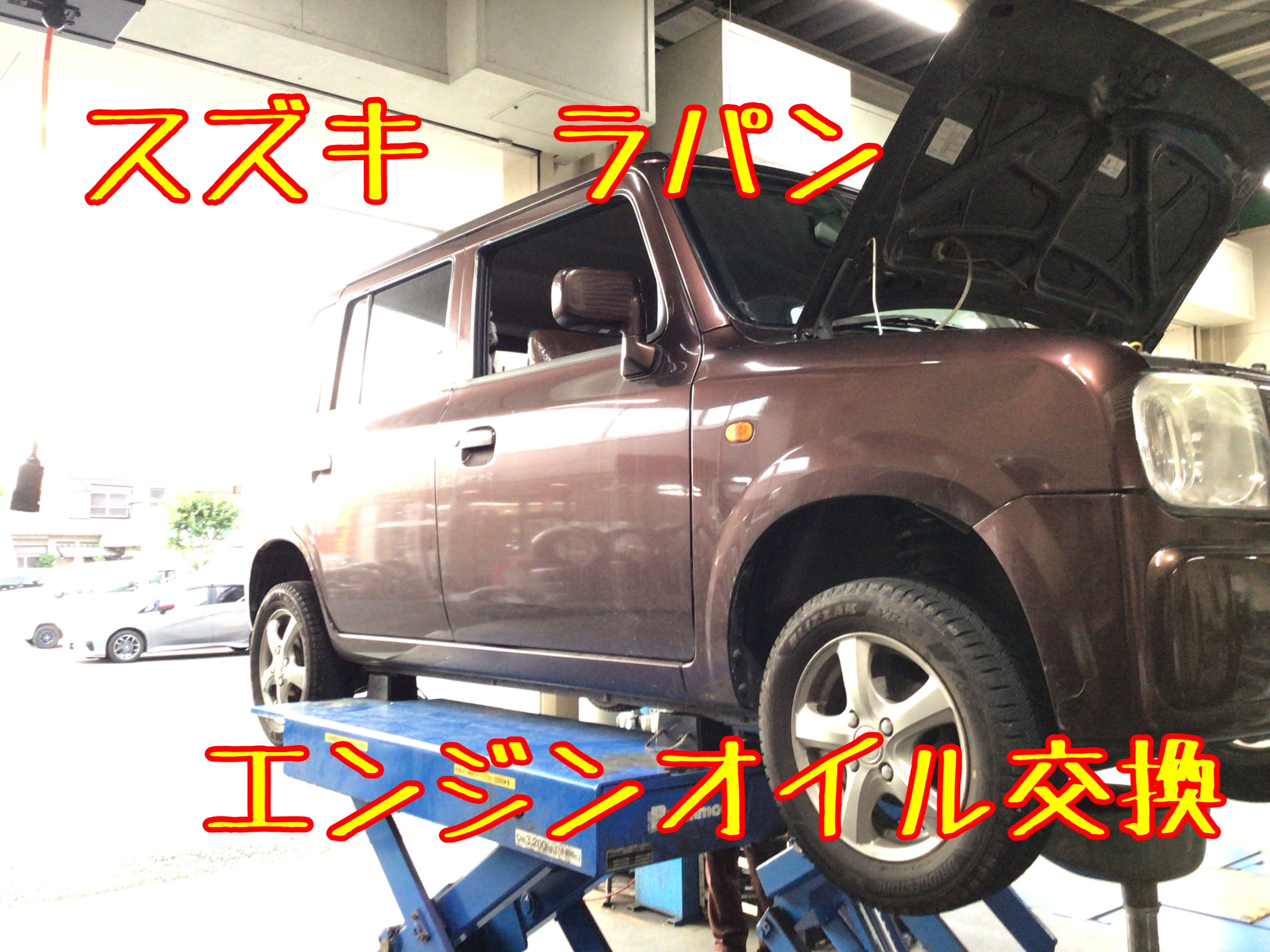 本日は、スズキ ラパン のエンジンオイル交換を行いました。