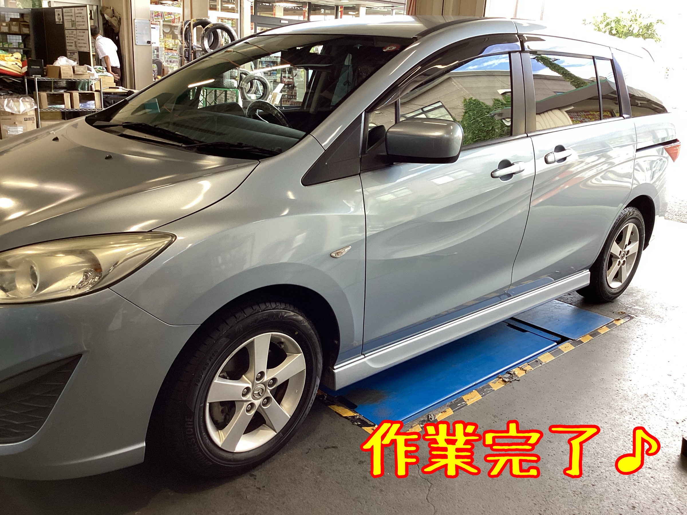 本日は、マツダ プレマシー のタイヤ交換を行いました。
