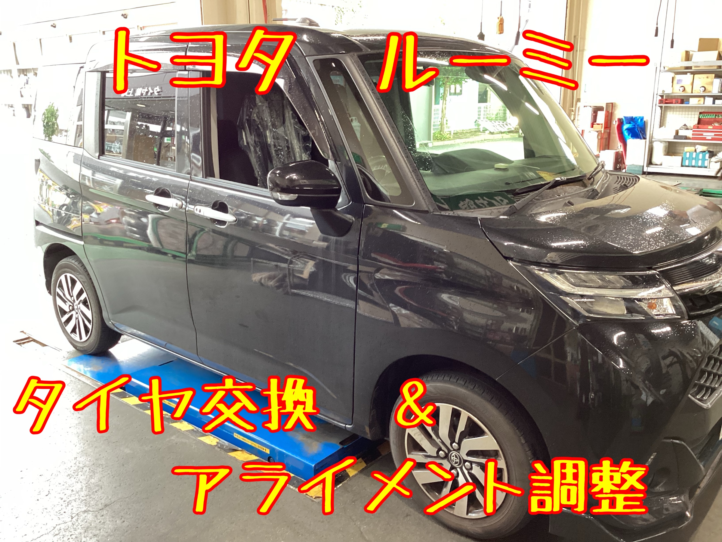 本日は、トヨタ ルーミー のタイヤ交換&アライメント調整作業を行いました。