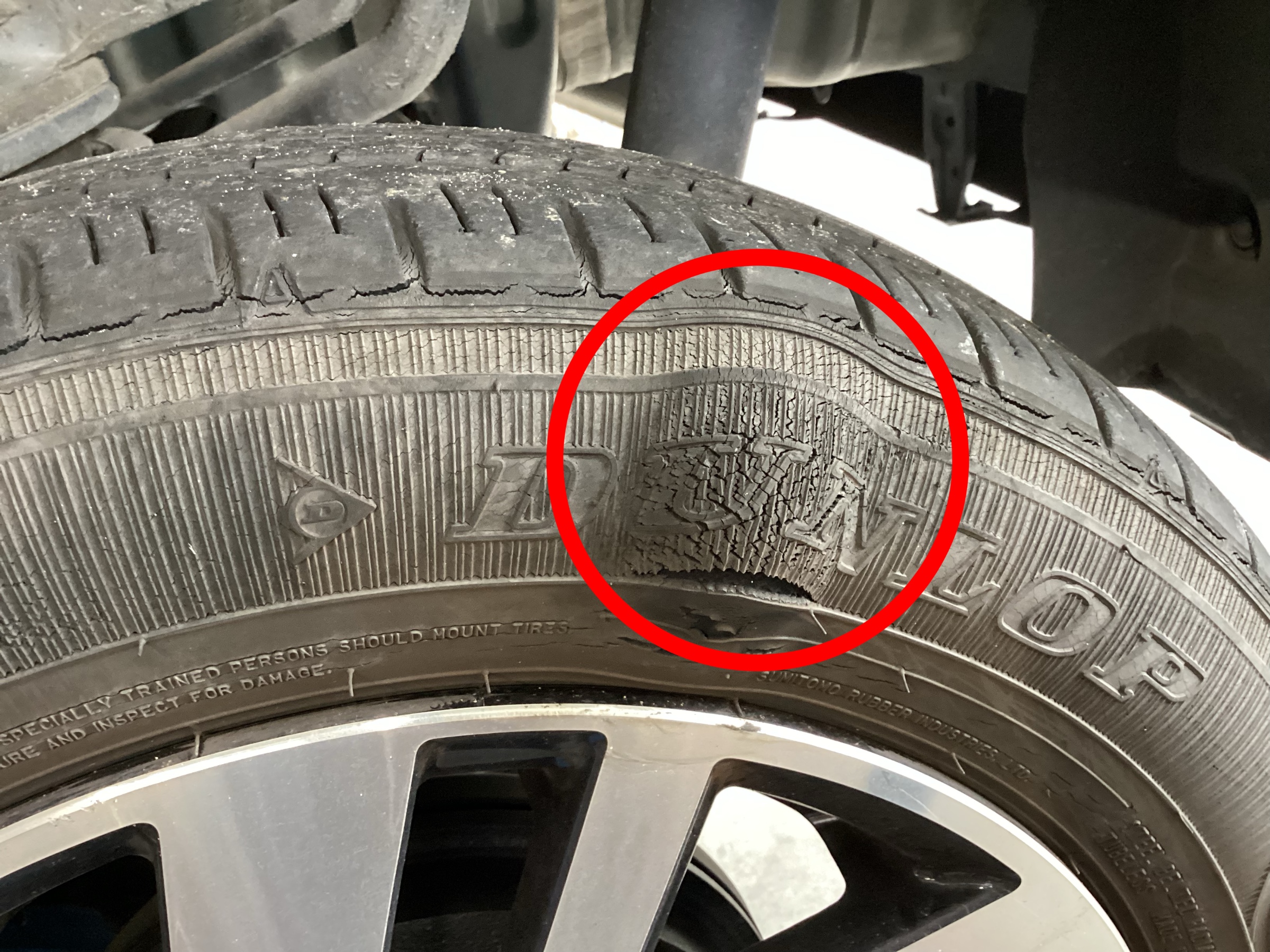 ↑今回、1ヶ所タイヤに損傷が見られ、また、タイヤの溝も少なくなってきていましたので、4本共にタイヤ交換をさせていただきました。