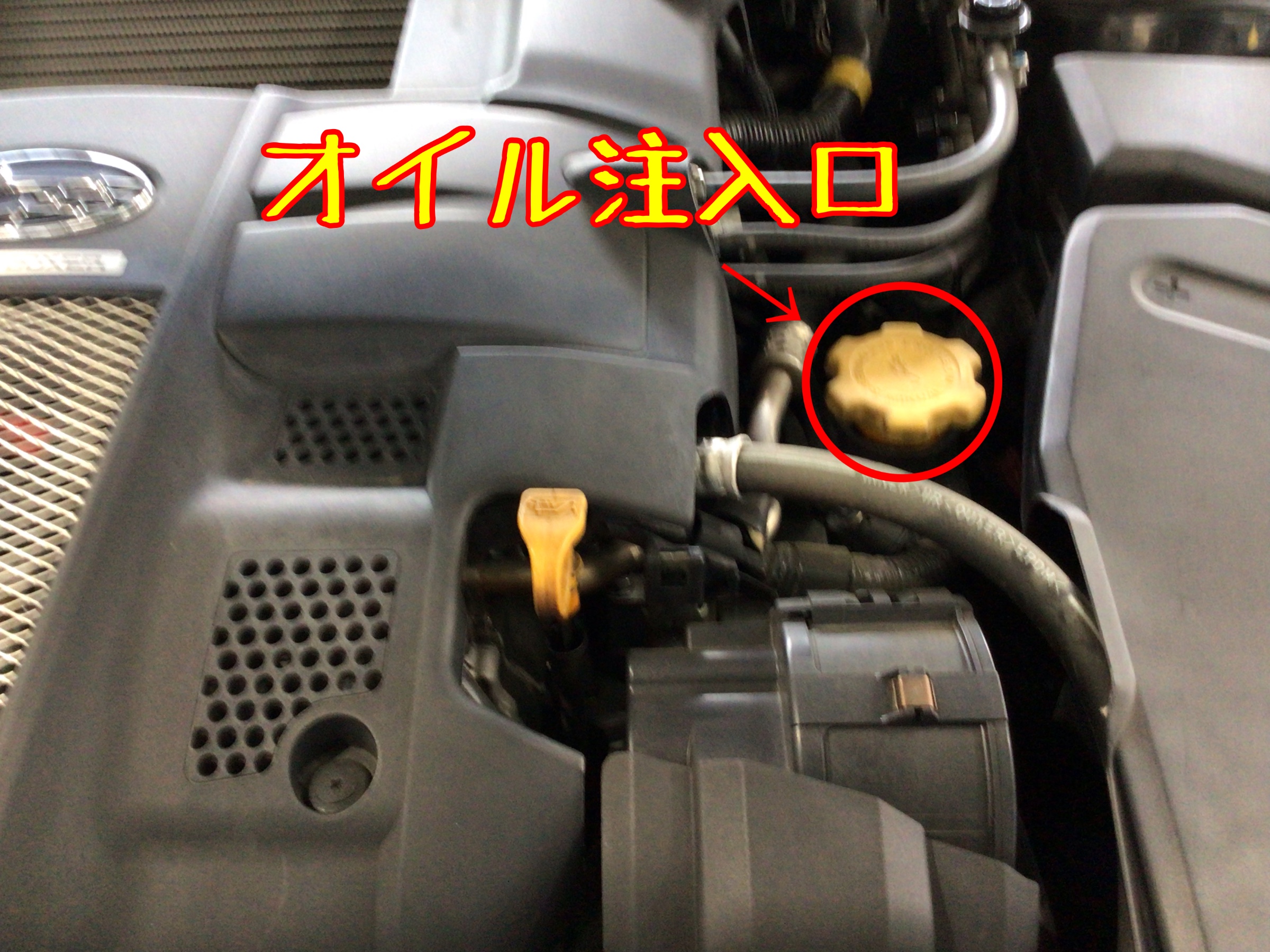 ↑オイル注入口から新しいオイルを入れます。漏れチェックを行い、