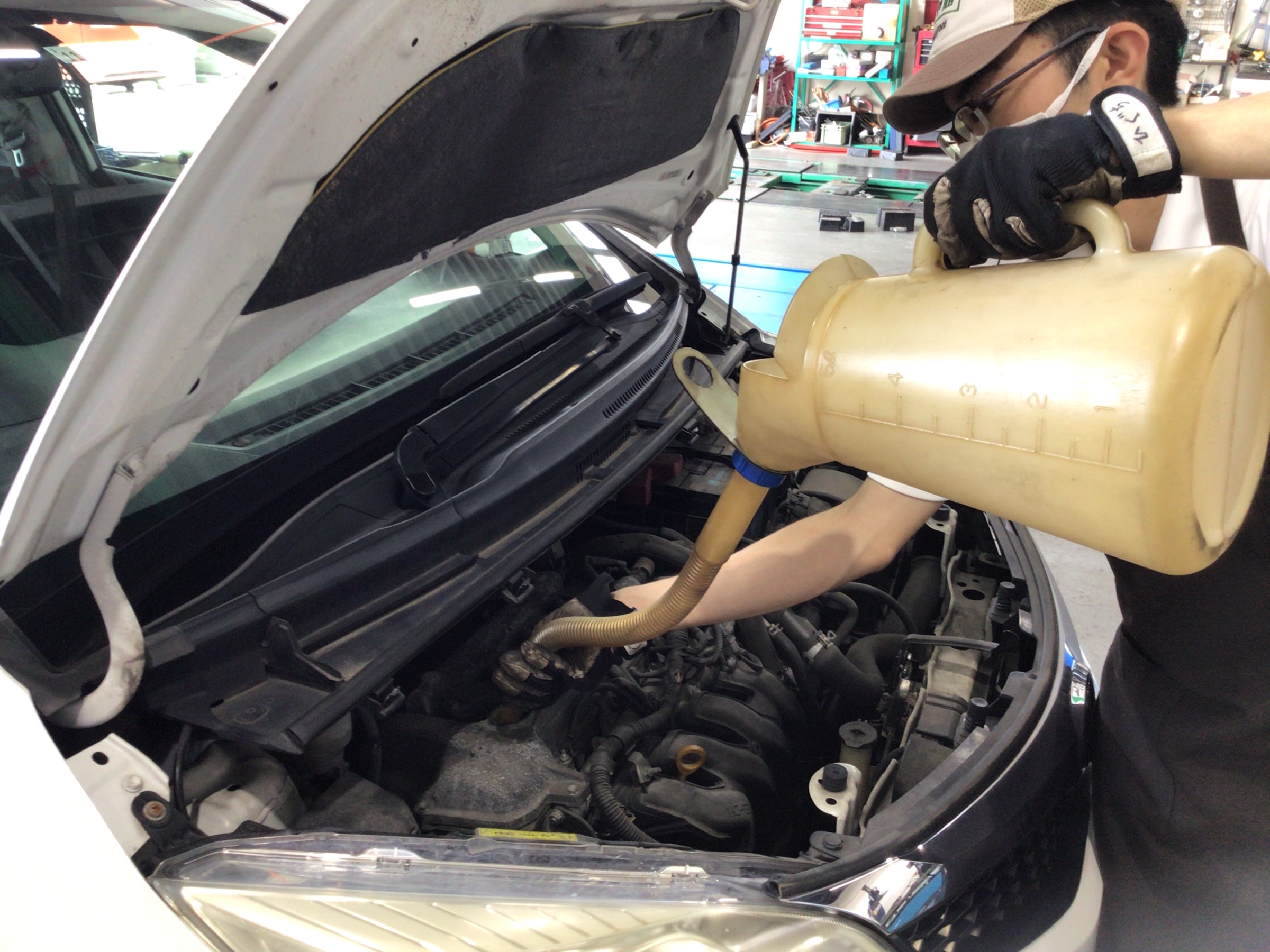 本日は、トヨタ ラクティス のオイル交換&フラッシング作業を行いました。