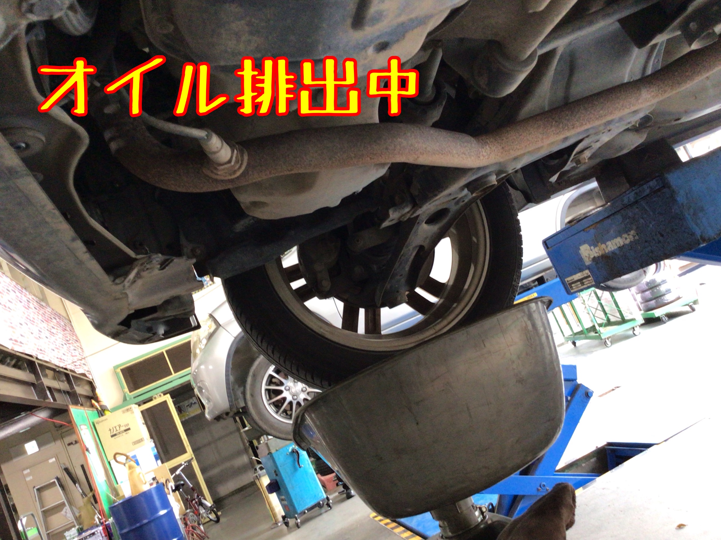 ↑作業中の写真です。車体下部よりエンジンオイルを抜き取ります。
