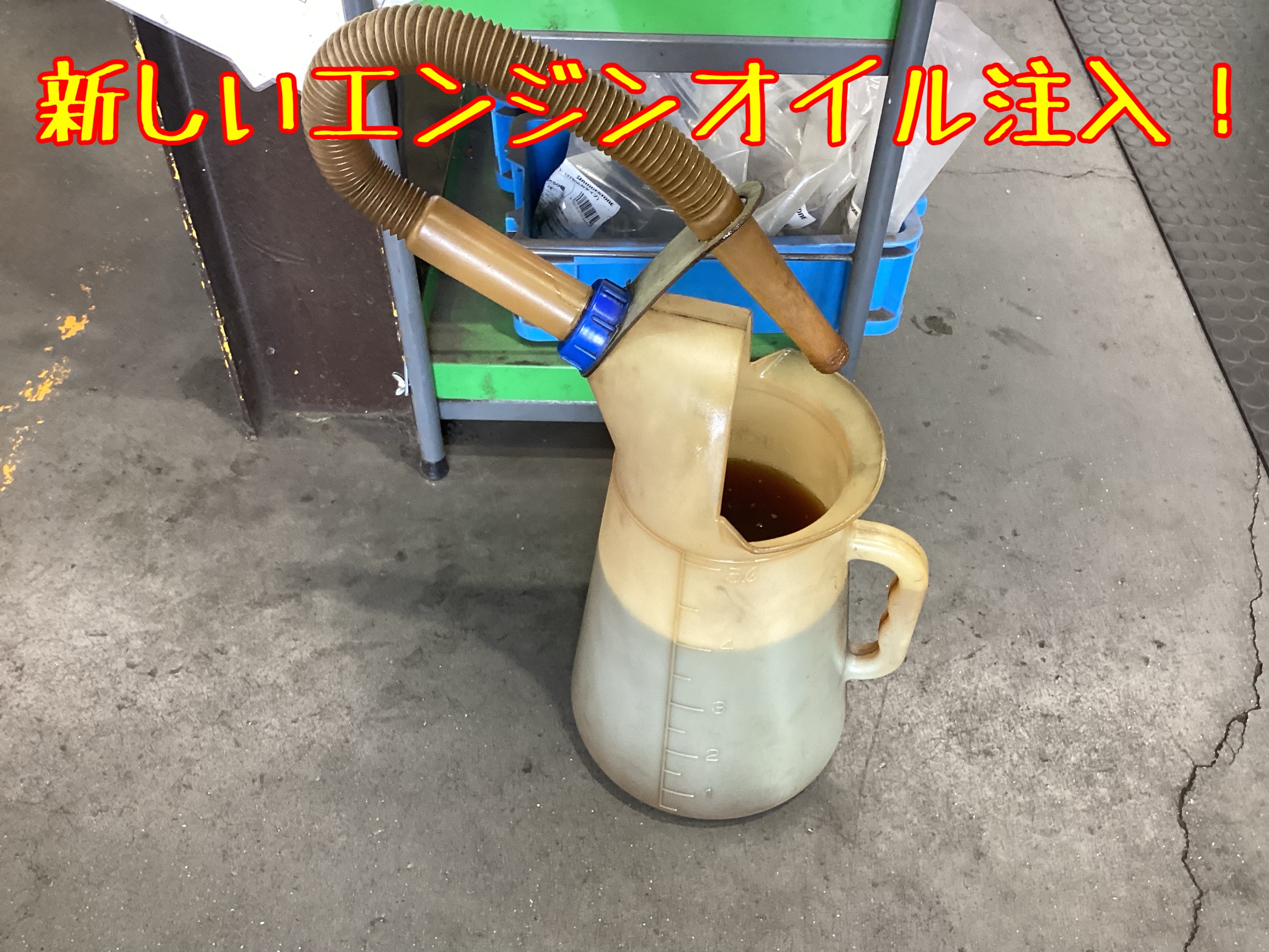 ↑オイルが抜けたら、新しいエンジンオイルを注入!