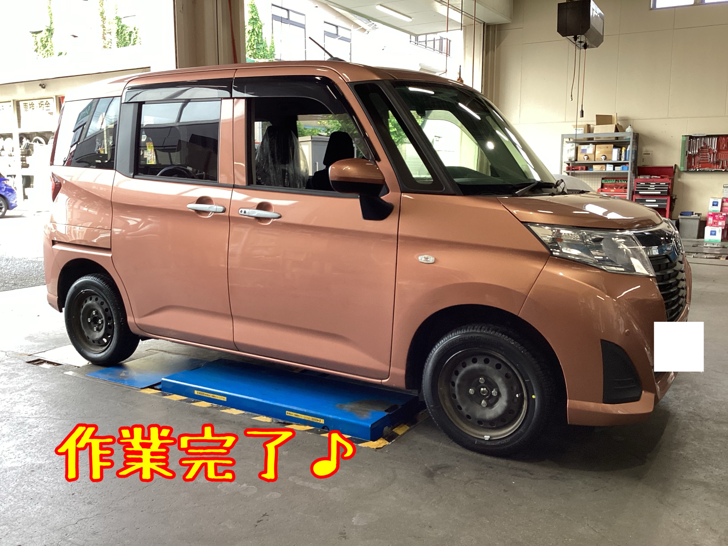 本日は、トヨタ ルーミー のタイヤ交換&アライメント調整を行いました。
