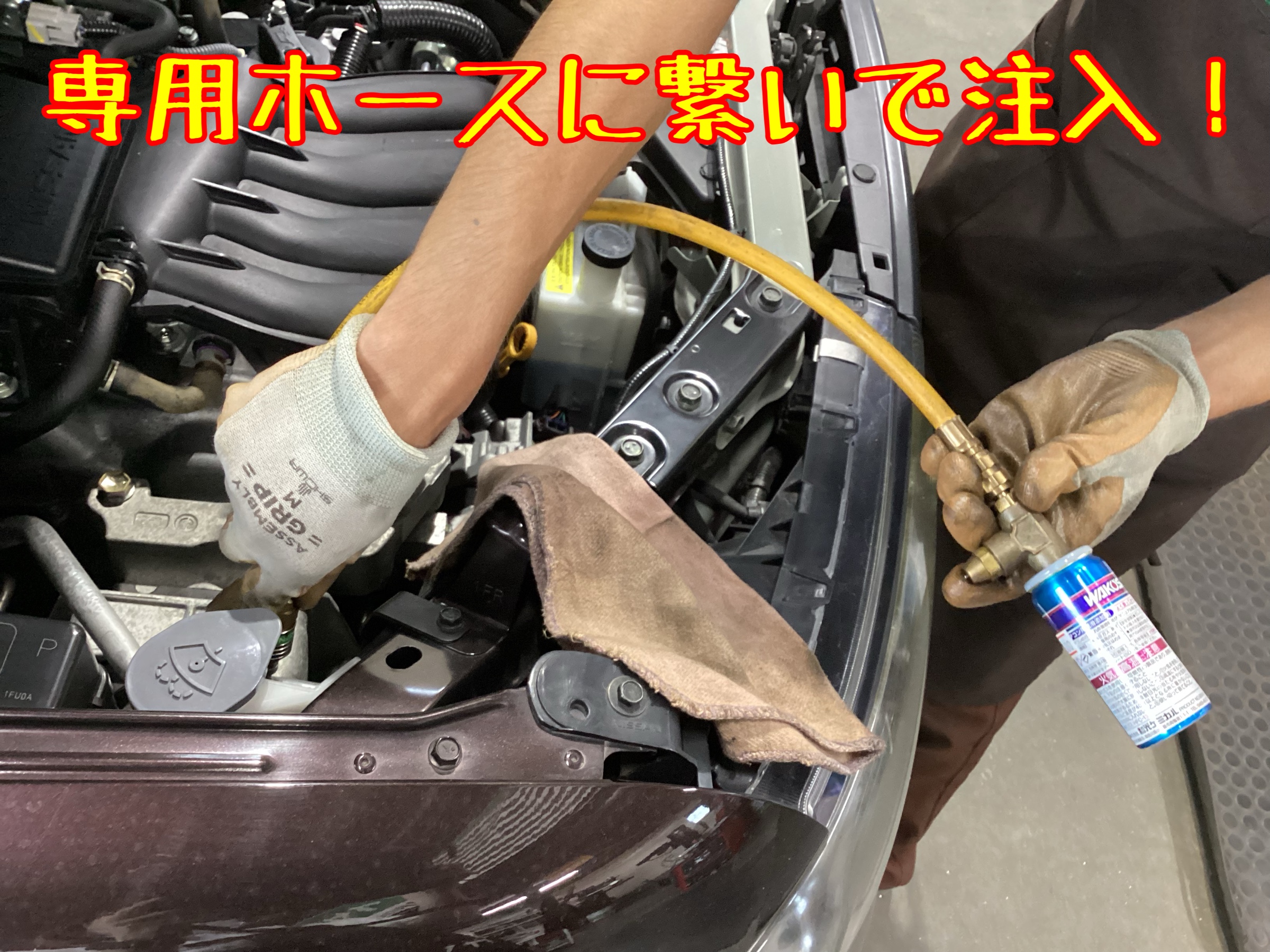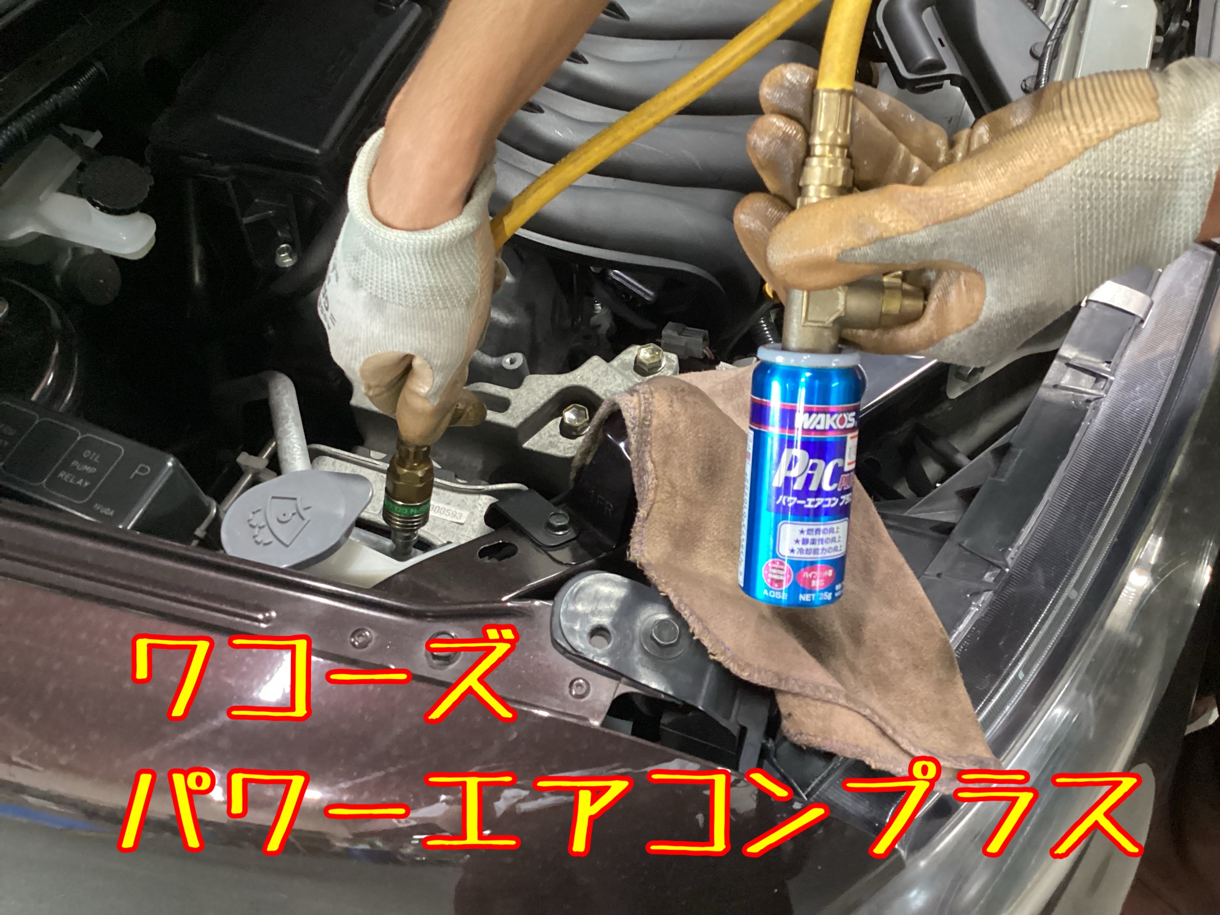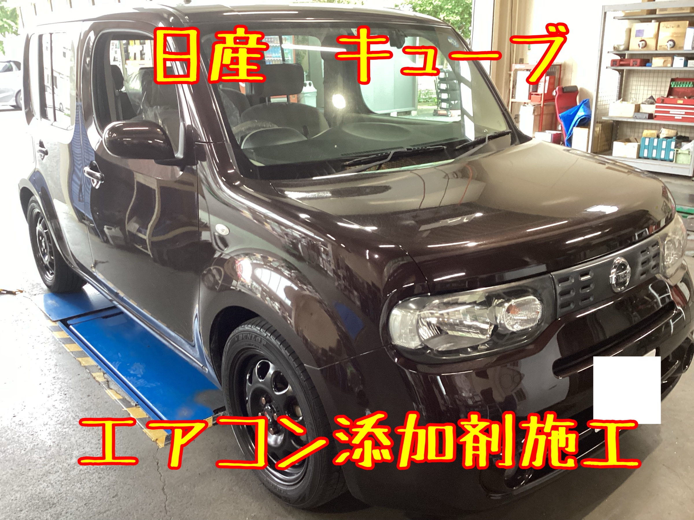 日産 キューブ エアコン添加剤「WAKO‘S パワーエアコンプラス」施工